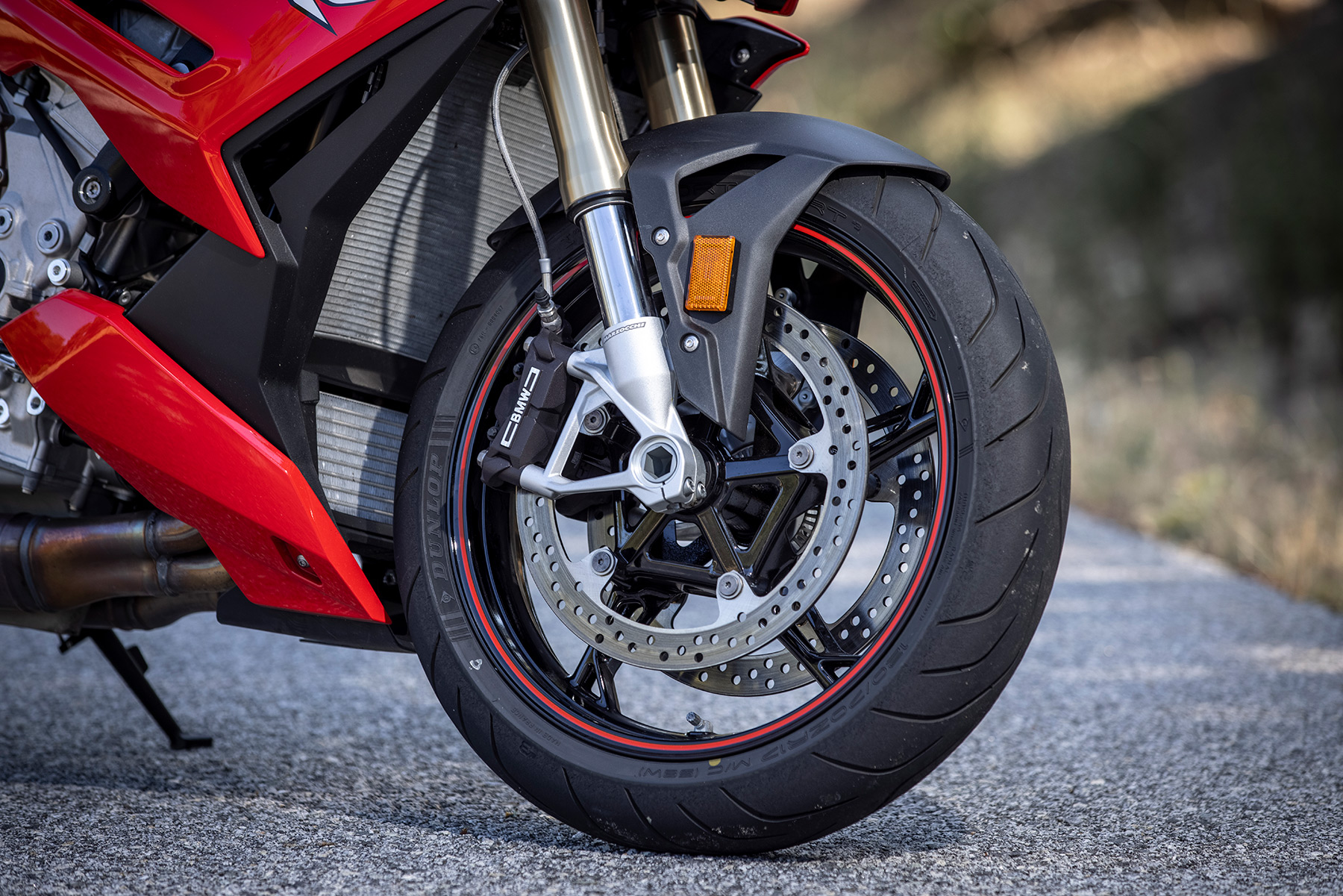 Antes te hemos sugerido que comprimas el tren delantero (con ayuda de alguien) para comprobar el buen funcionamiento de la horquilla. Ahora simplemente te recordamos que eches un vistazo a la barra que "entra" en la botella gorda. Si no queda rastro y se mantiene seca es un buen síntoma. Si por el contrario queda un rastro de aceite y está húmeda significa que el retén de esa barra se ha ido, y aunque no es una operación grave ni algo raro, es un síntoma de falta de atención por parte del vendedor. De no arreglarse rápidamente ese rastro de aceite pasará a ser más, llegando incluso a contaminar las pastillas de freno que se encuentran cerca, impregnándolas de aceite y disminuyendo considerablemente su efectividad de frenado, ojo ahí.
