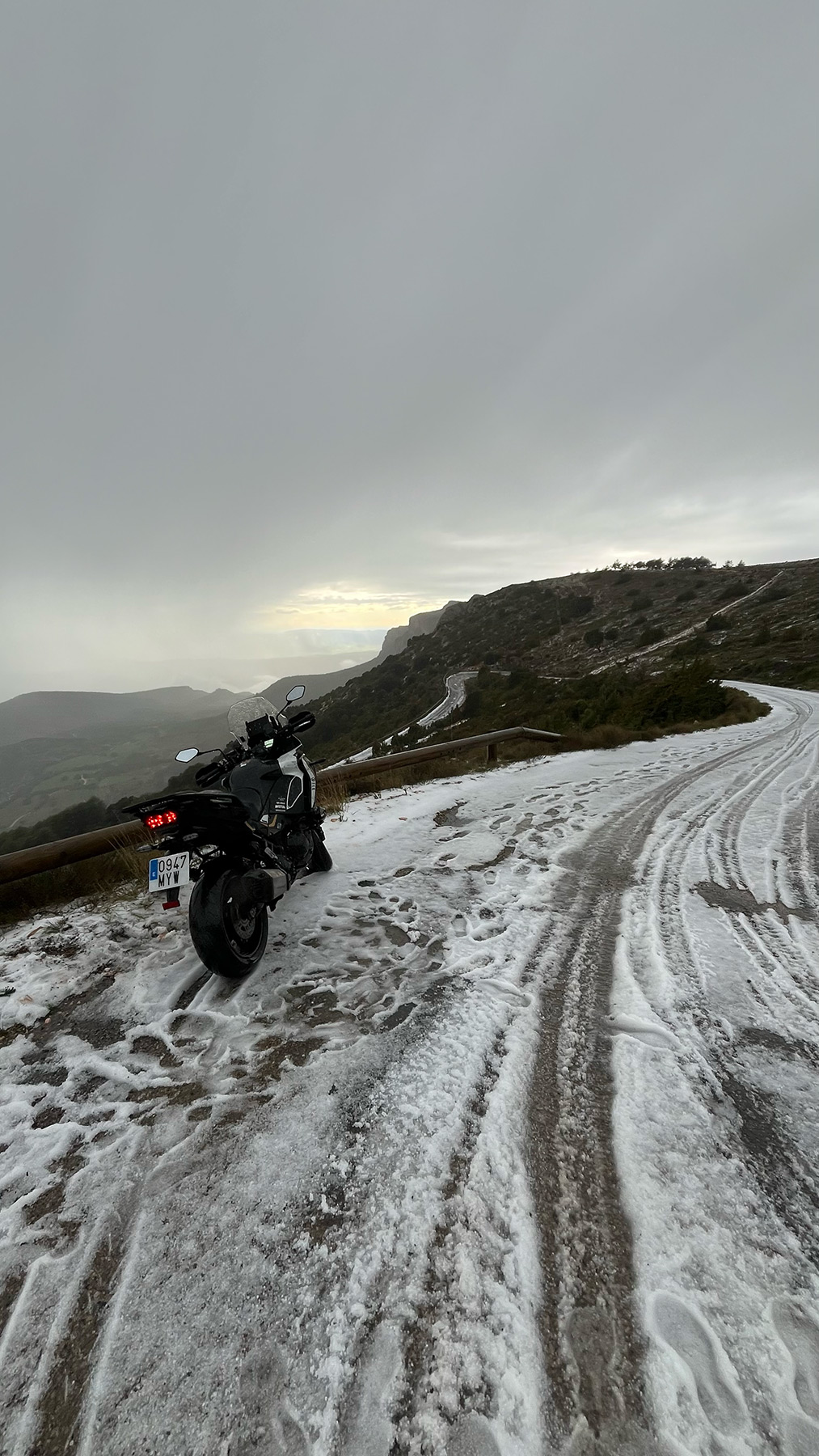 El sábado fue el día más largo y más duro. 14 horas sobre la moto, saliendo a las 7:00 bajo una lluvia incesante y cruzando los Pirineos catalanes, franceses y Andorra. Cerramos el día en Tortosa, después de un final épico coronando el Mont Caro.