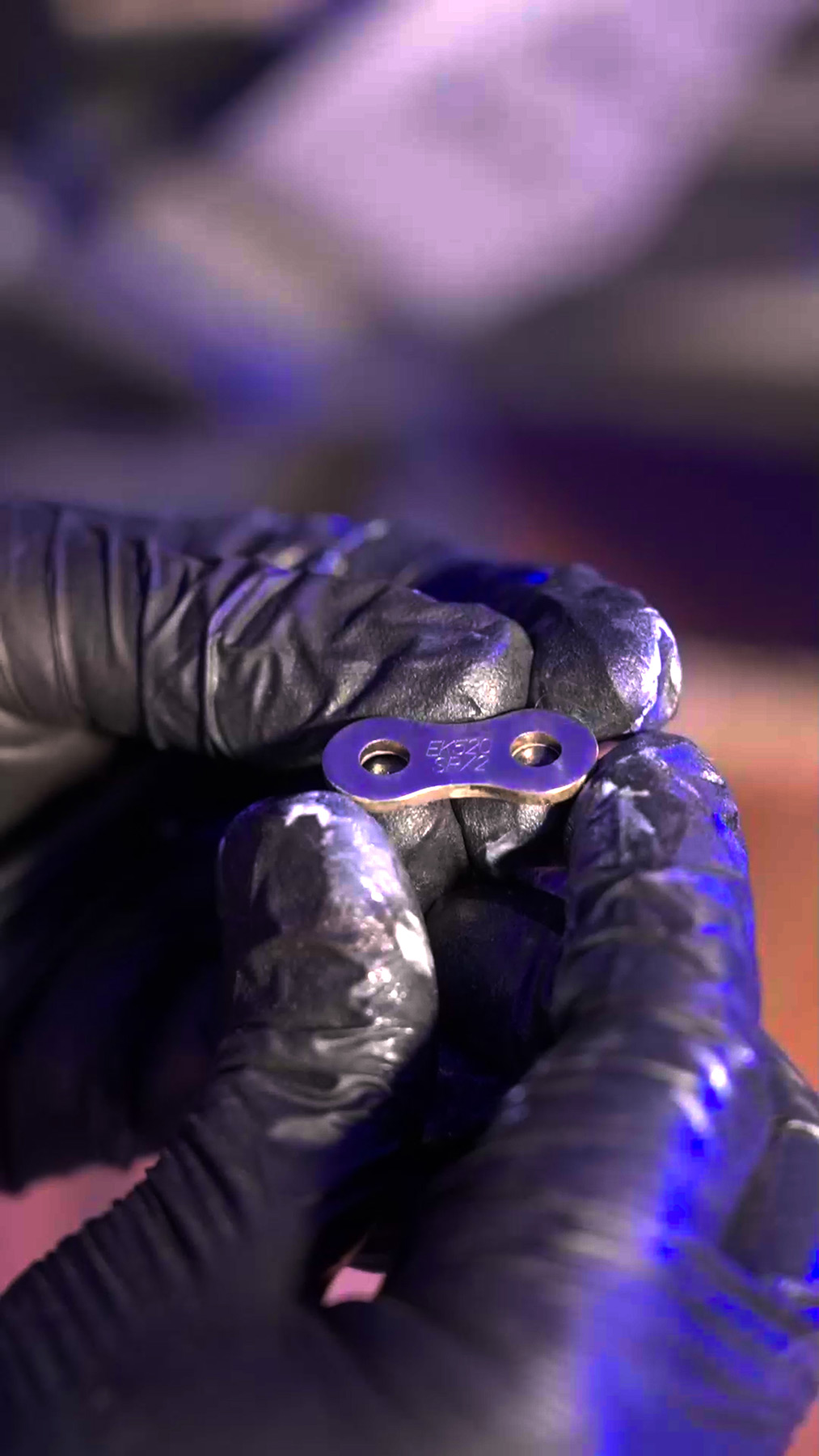 El remache final es una de las partes más delicadas del proceso. Si aprietas de más, puedes dejar el eslabón demasiado rígido (gripado) o incluso dañar el cierre. Si te quedas corto, corres el riesgo de que se suelte en marcha.