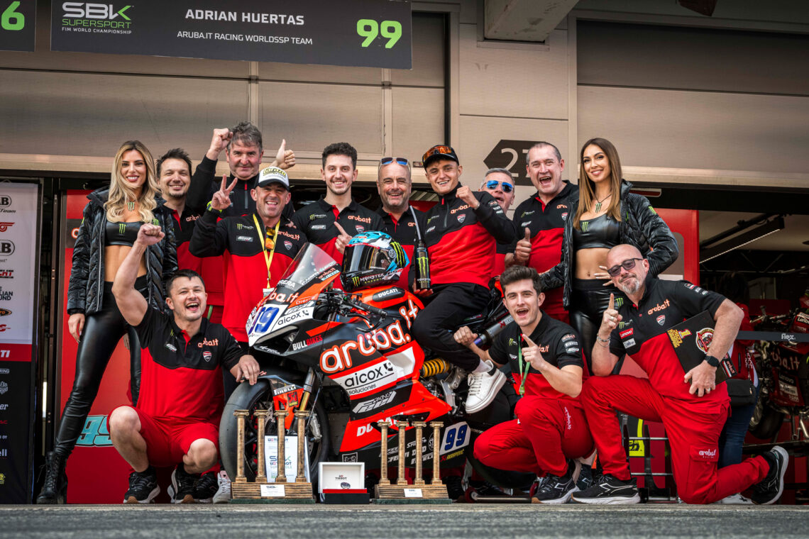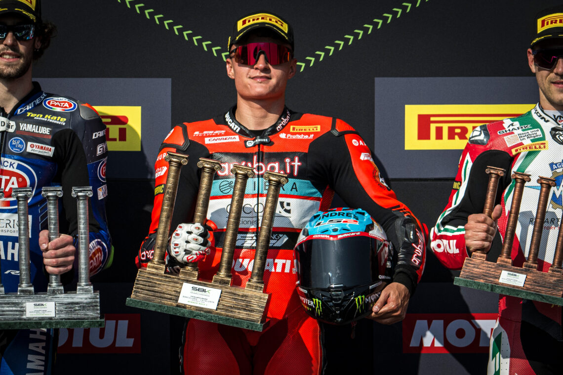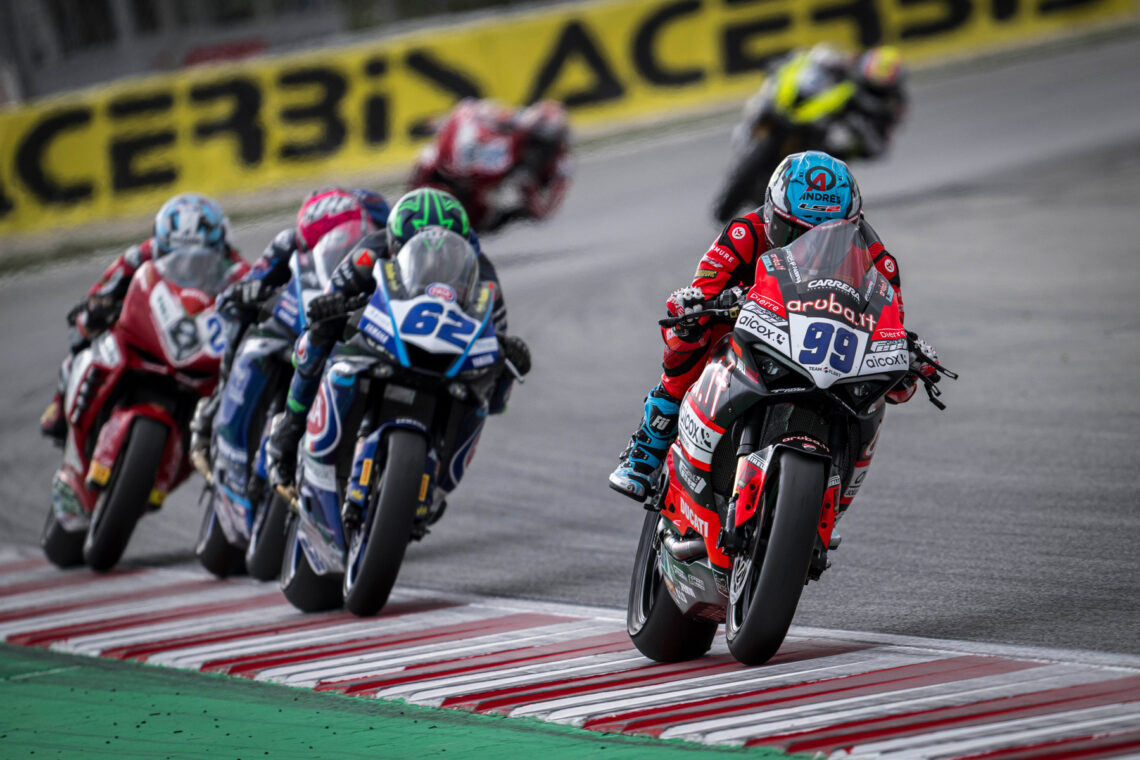 La primera carrera, que cerró la jornada del sábado tras la primera victoria de Razgatlioglu con BMW, fue dominada por Huertas, aunque tuvo que gestionar. Gracias a una buena salida, el español se puso líder por delante de Can Öncü, pero el turco no dudó al inicio de la segunda vuelta y superó al piloto de Ducati. Este fue el inicio de un bonito duelo entre Huertas y Öncü, con numerosos intercambios para liderar la primera mitad de la carrera.