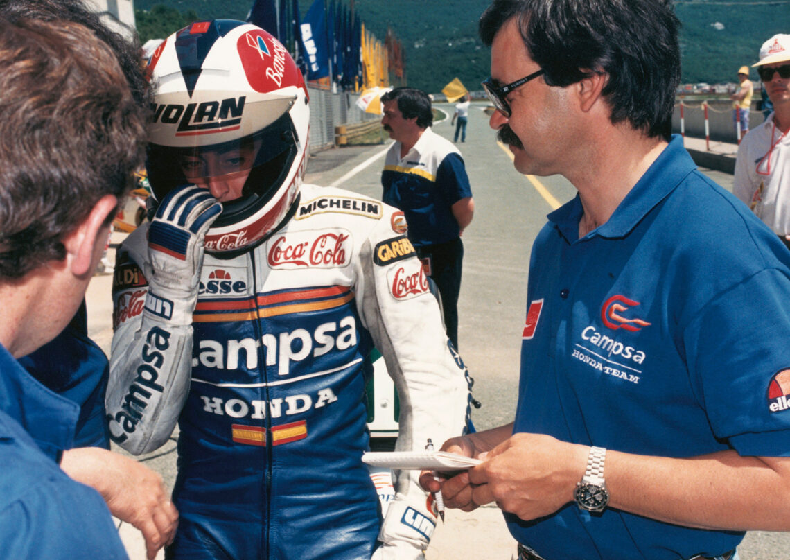 «Antonio era una persona inteligente, pero no sólo para hablar de motos, sino para hablar de todo en la vida. Yo estoy muy agradecido a Antonio, porque fue una persona que iluminó mi época en el equipo de Sito Pons; él era el que iluminaba el equipo, el que daba los caminos. No sólo como profesional, también como ser humano. Era una persona muy grande en la parte humana también», completa el carioca para referirse a una auténtica leyenda de la ingeniería del motociclismo.