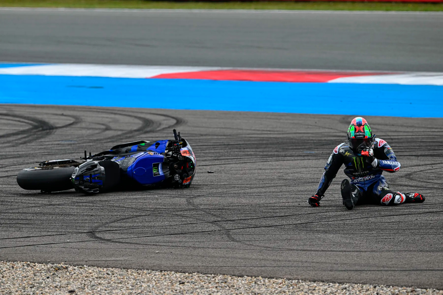2023 fue una pesadilla para Álex Rins y sus peores fantasmas han regresado esta temporada. El catalán sigue en su espiral de infortunios, siendo el último una lesión sufrida en la primera curva de la carrera dominical de Assen. El #42 tuvo un escalofriante highside, 'volando' e impactando con el asfalto.