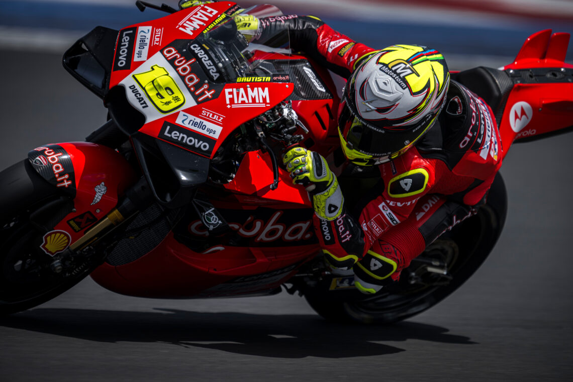 Tras rumores, confirmaciones y meses de espera, Álvaro Bautista se subió de nuevo a la Ducati Desmosedici GP23. El ‘regalo’ por parte de los de Borgo Panigale se hizo realidad y el talaverano disfrutó sobre la mejor moto de la parrilla de MotoGP. No se subía a una moto de la categoría reina desde finales de 2018, hace casi cinco años.