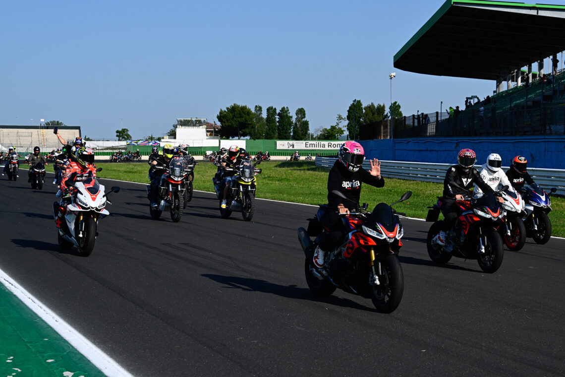 Los grandes protagonistas del evento fueron los pilotos, que deleitaron al público con actividades de todo tipo: desde un paseo en helicóptero de la Marina Militare saludando a los aficionados, pasando por salir a rodar con las Aprilia RS-GP de MotoGP, liderando unas vueltas de honor a Misano y una caravana motera, hasta diferentes shows con todos los fans.