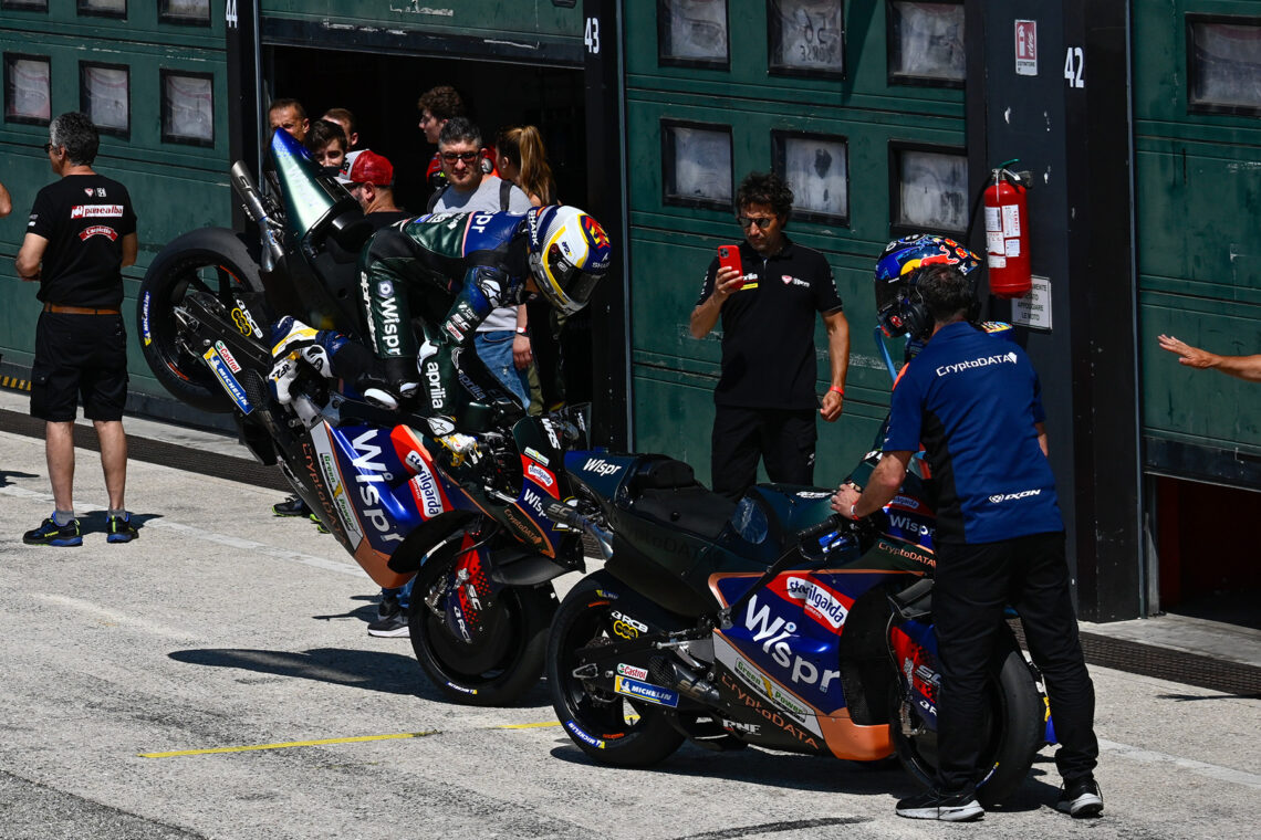 Raúl Fernández y Maverick Viñales también disfrutaron de lo lindo subidos a la 250cc, que en el caso de Raúl supuso vivir una primera experiencia con una Aprilia 2T. Cabe recordar que Viñales llegó a competir con los de Noale en el Mundial de 125cc en 2011, logrando tres victorias aquel año.