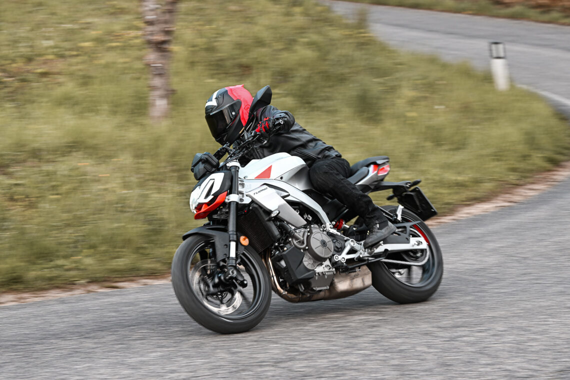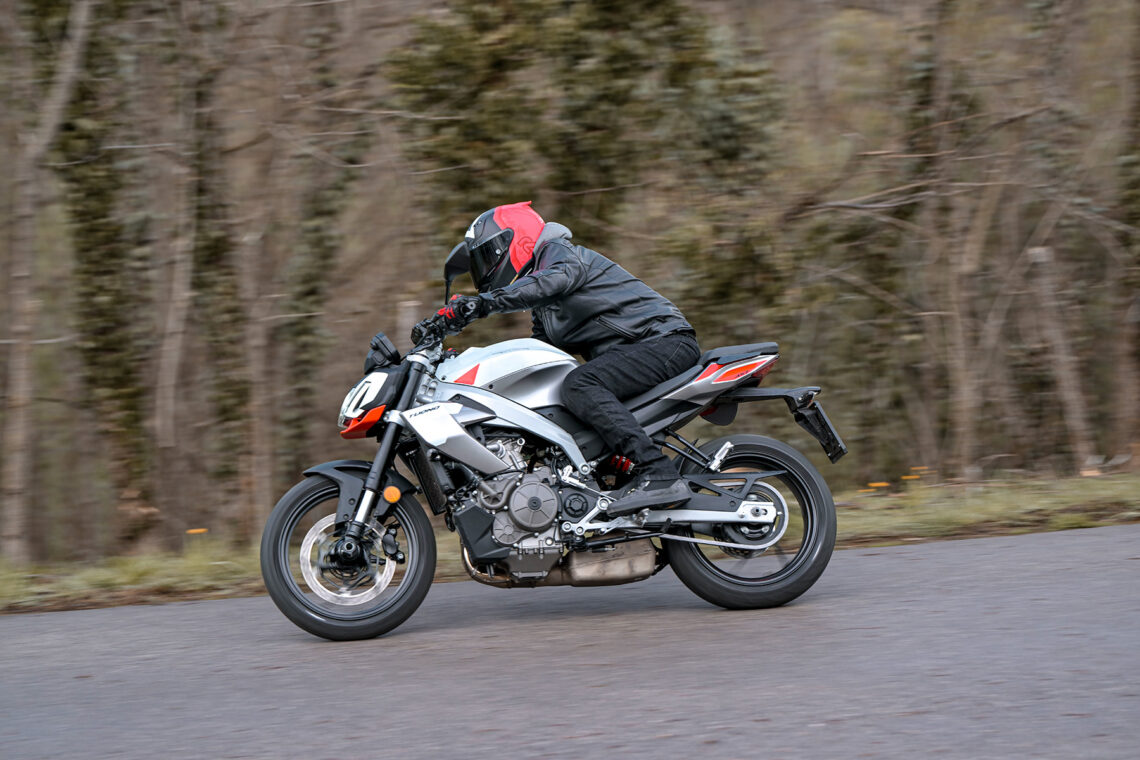Su motor de 457 cc –gracias, Aprilia, por ser coherente con el nombre comercial– rinde el máximo permitido: 35 kW, o lo que es lo mismo, 47,6 CV a 9.400 rpm. Lo curioso es que su par motor, de 43,5 Nm en su pico máximo, entrega hasta un 82% a tan solo 3.000 vueltas, así que se postula como una moto con muchos bajos. Además, cuenta con embrague antirrebote y quickshifter de subida y bajada, este último opcional.