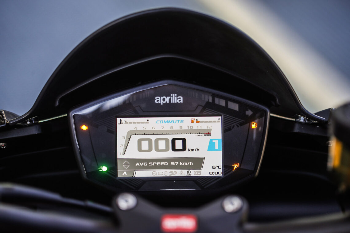 Para ajustar y navegar por este maremágnum de funciones, el usuario puede utilizar una maravillosa pantalla TFT a color por la que moverse mediante un control de cuatro botones muy intuitivo en la piña izquierda. Puedes añadir también como extra la plataforma multimedia Aprilia MIA que te permite conectar tu smartphone y beneficiarte de sus funcionalidades.