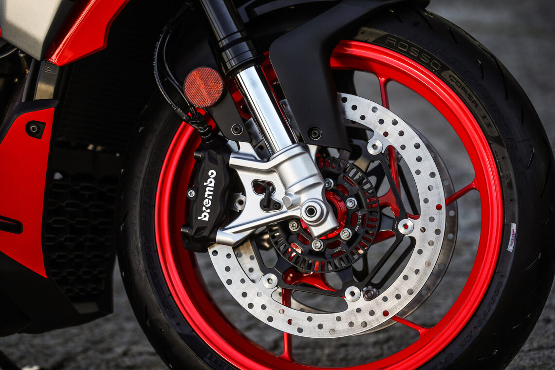 Esto merece una mención aparte. En la concepción de esta moto se ha buscado sobre todo el rendimiento deportivo, por lo que la ligereza está entre las máximas prioridades. Y parece que les ha salido bien porque la cifra final ha sido de sólo 183 kg de peso en orden de marcha (169 kg en seco). Si a esto le añadimos una potencia de 95 cv, estamos ante una espectacular relación peso-potencia, una de las mejores del segmento. Esto permite que podamos alcanzar unas prestaciones superiores, pero también hace que sea mucho más fácil su manejo para cualquier usuario independientemente de su experiencia.
