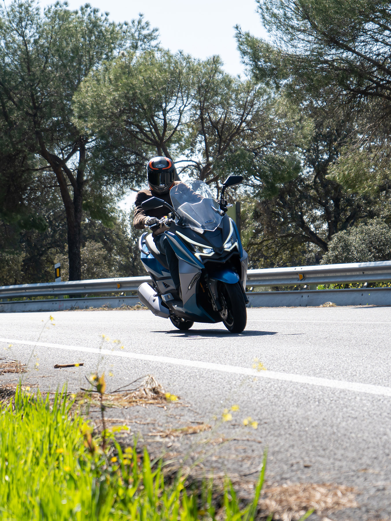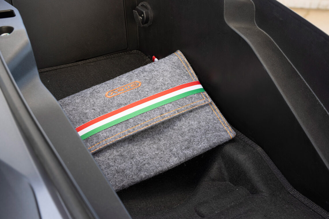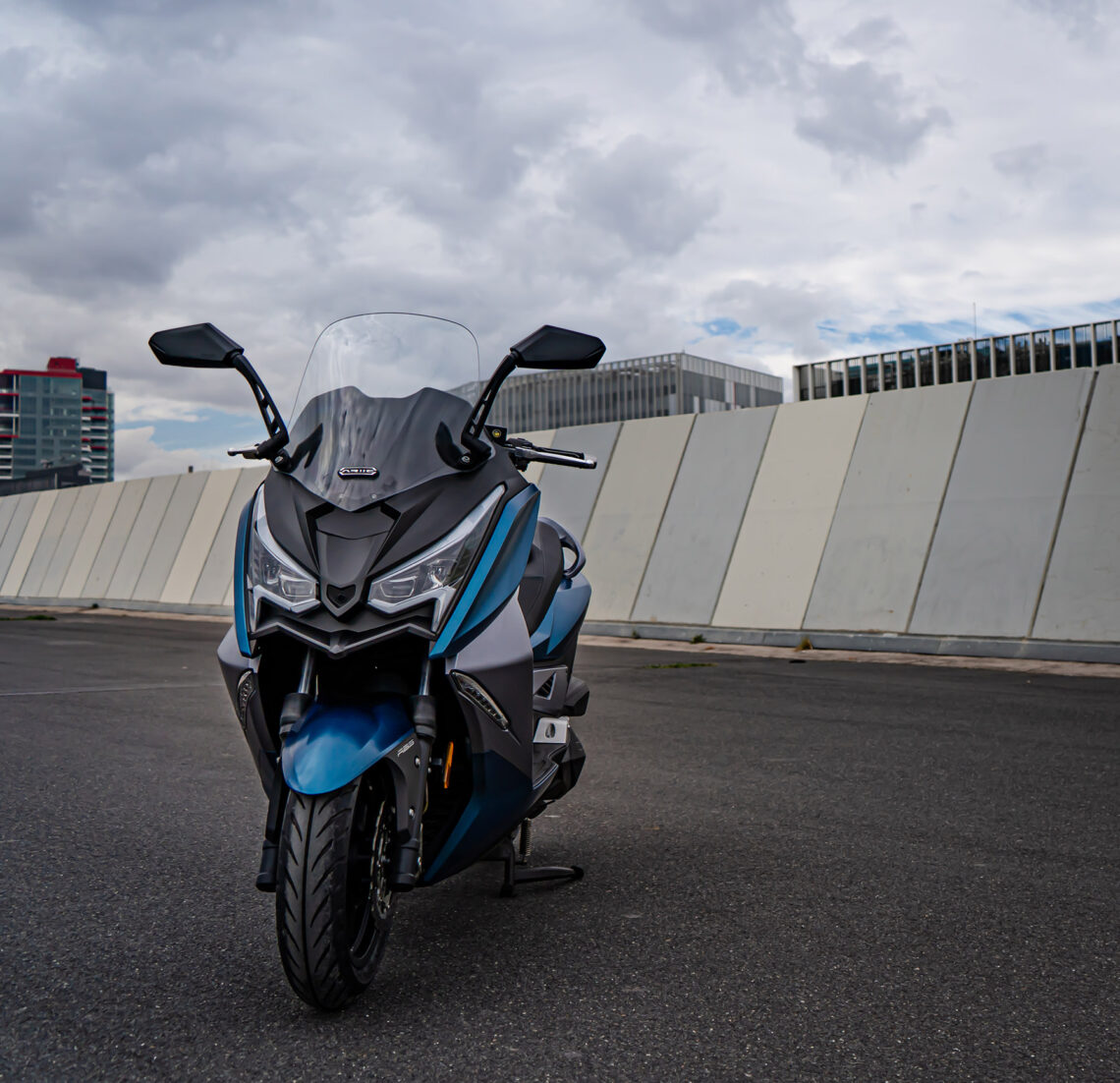 Como vemos, los componentes son de primer orden y no ha habido reparos a la hora de tirar del mercado global. El ABS lo suministra la alemana Bosch y cuenta con un doble disco delantero de perfil lobulado mordido por pinzas de cuatro pistones de anclaje radial, detrás el habitual disco con pinza de simple pistón. Los neumáticos los suministra Pirelli, lo cual redunda en su seguridad y calidad de rodadura, y tienen unas medidas de 120/80-14” para el delantero y 150/70-13” el neumático trasero. El bastidor es una estructura tubular de acero provisto de una horquilla telescópica convencional en el tren delantero y detrás emplea una pareja de amortiguadores. El embrague centrífugo lo suministra la japonesa FCC, misma nacionalidad que los rodamientos NTN que monta o las piezas que forman la carrocería. Por cierto, a prueba de malos tratos como insiste en demostrar el dueño de la marca al dar a conocer el producto…