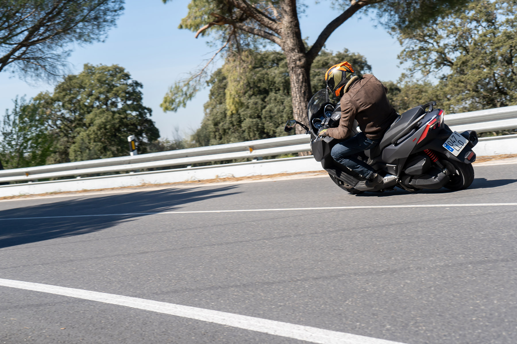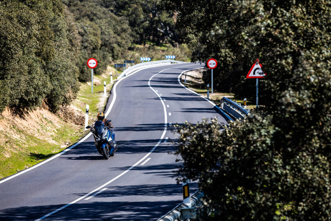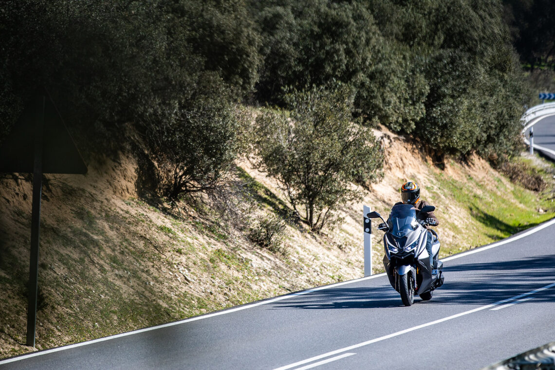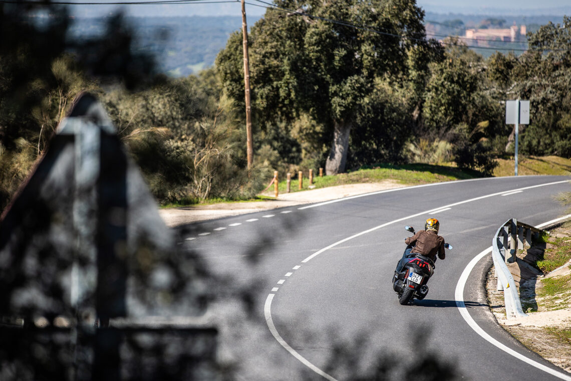 Arrancamos y el sonido del motor es discreto como esperábamos de un ciudadano ejemplar. El empuje del motor resulta el suficiente y destaca por hacerlo de manera muy suave. Ten en cuenta que sus 24 CV y 25 Nm se han de hacer cargo de unos 280 kg en condiciones normales, si incluimos su depósito lleno más nuestro peso.