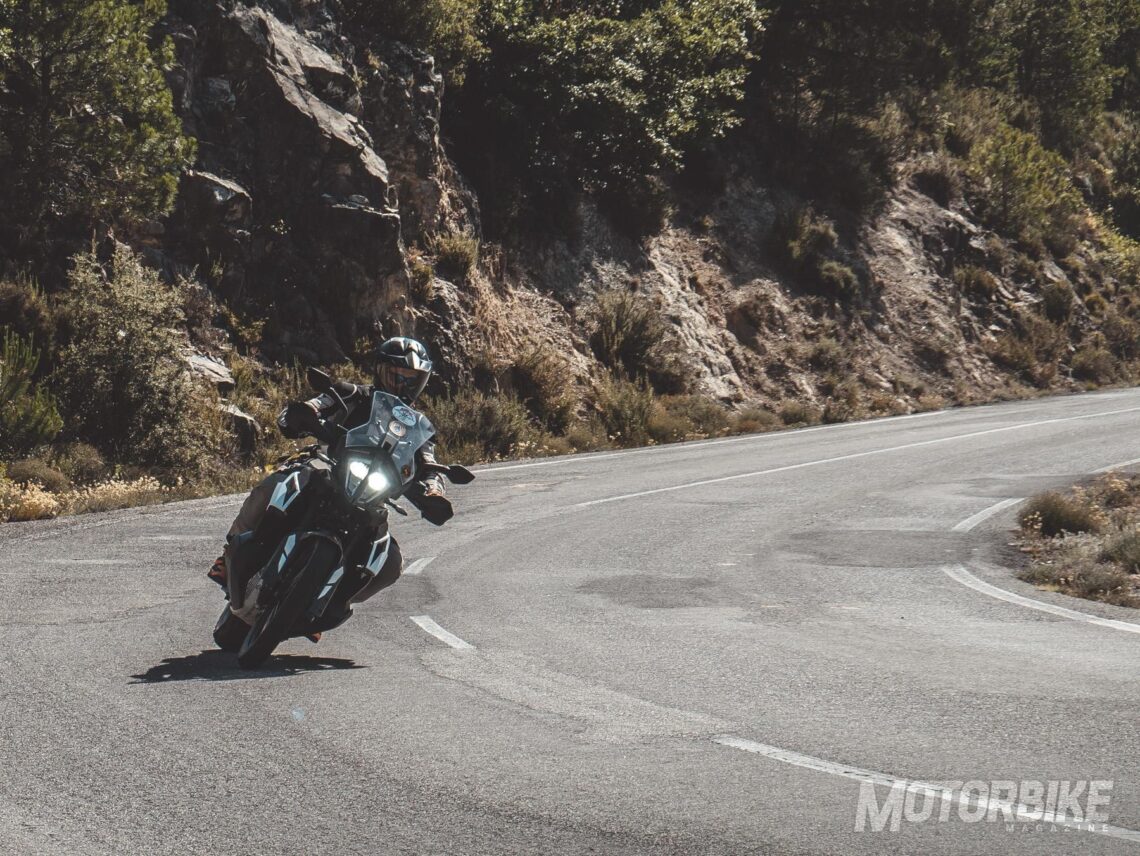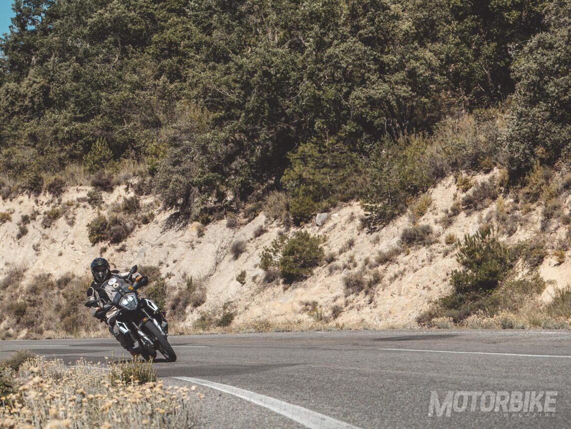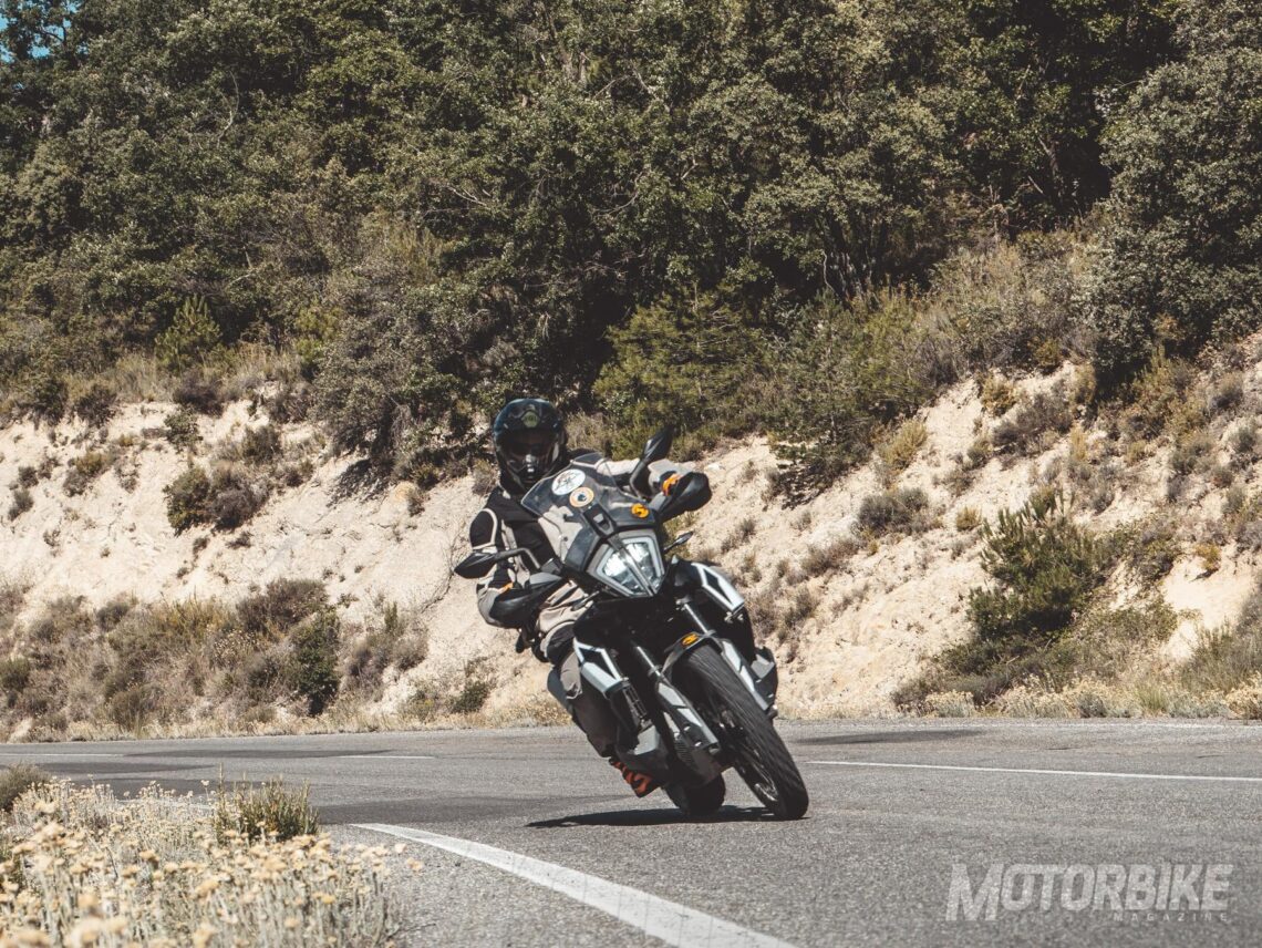Tanto en carretera como en campo, me ha sorprendido de manera increíble. Es verdad que mi '990' es más potente en cifras puras y parece 'más moto', pero cuando pruebas la KTM 790 Adventure te da la sensación de que estás con una moto mucho más capaz y que te permite muchas más cosas. A pesar de que dispone de un modo Off-Road, he preferido personalizarme mi propio modo utilizando el Street con toda la potencia disponible (95 cv) y con el control de tracción y el ABS desactivados. Aun así, la moto no se descontrola del todo y puedes hacer derrapadas verdaderamente controladas y con unas aceleraciones rapidísimas. Seguramente para un piloto principiante es mejor contar con las ayudas que sí que tiene en el modo Off-Road.