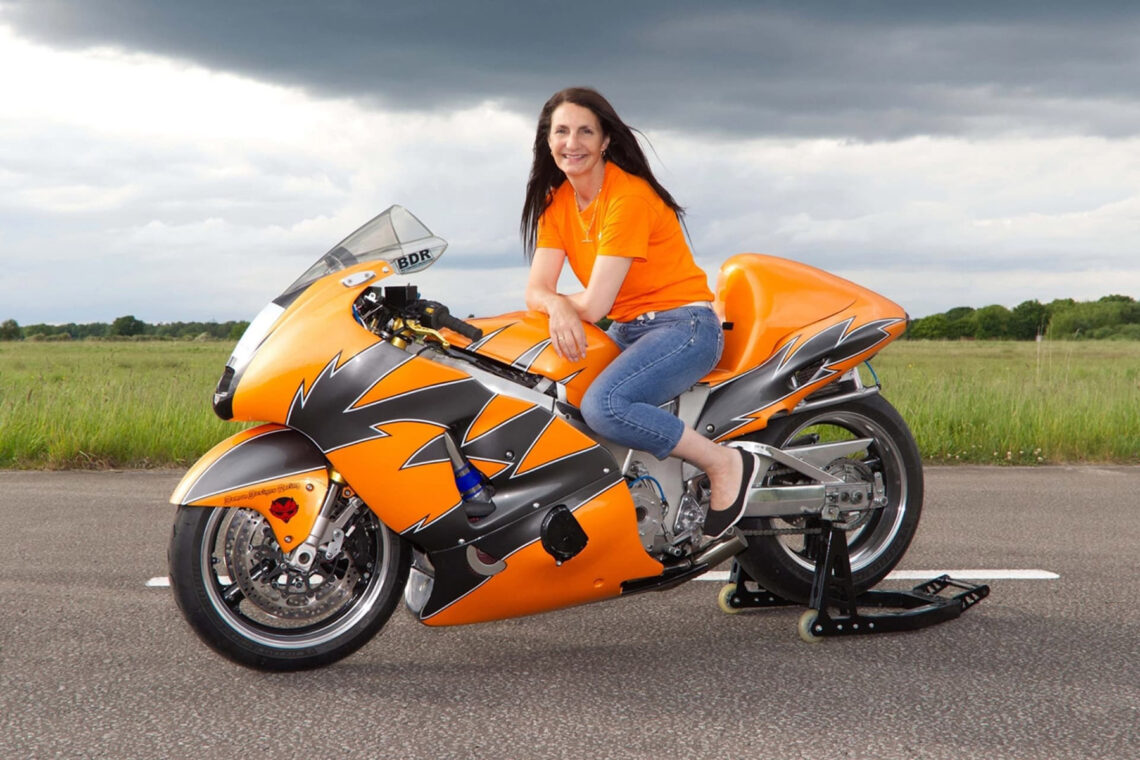 La británica Becci Ellis ha batido un nuevo récord de velocidad al alcanzar desde parado los 372,38 km/h a lomos de una Suzuki Hayabusa turbo preparada por su marido en el garaje de su casa.
