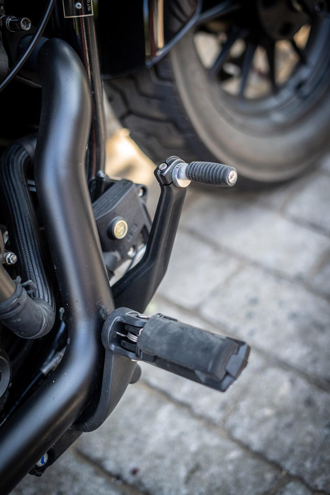 La accesibilidad de la Benda Chinchilla 500 es todo lo buena que el universo custom nos tiene acostumbrados. Su asiento a sólo 70.5 cm del suelo permite que todos los conductores apoyen con las dos plantas en el suelo, por muy bajitos que sean. Estriberas adelantadas pero no forzadas y manillar ancho y plano, ofrecen una postura natural que te reclama. Además, las punteras de los pedales son regulables para adaptarse a todas las medidas de pie.