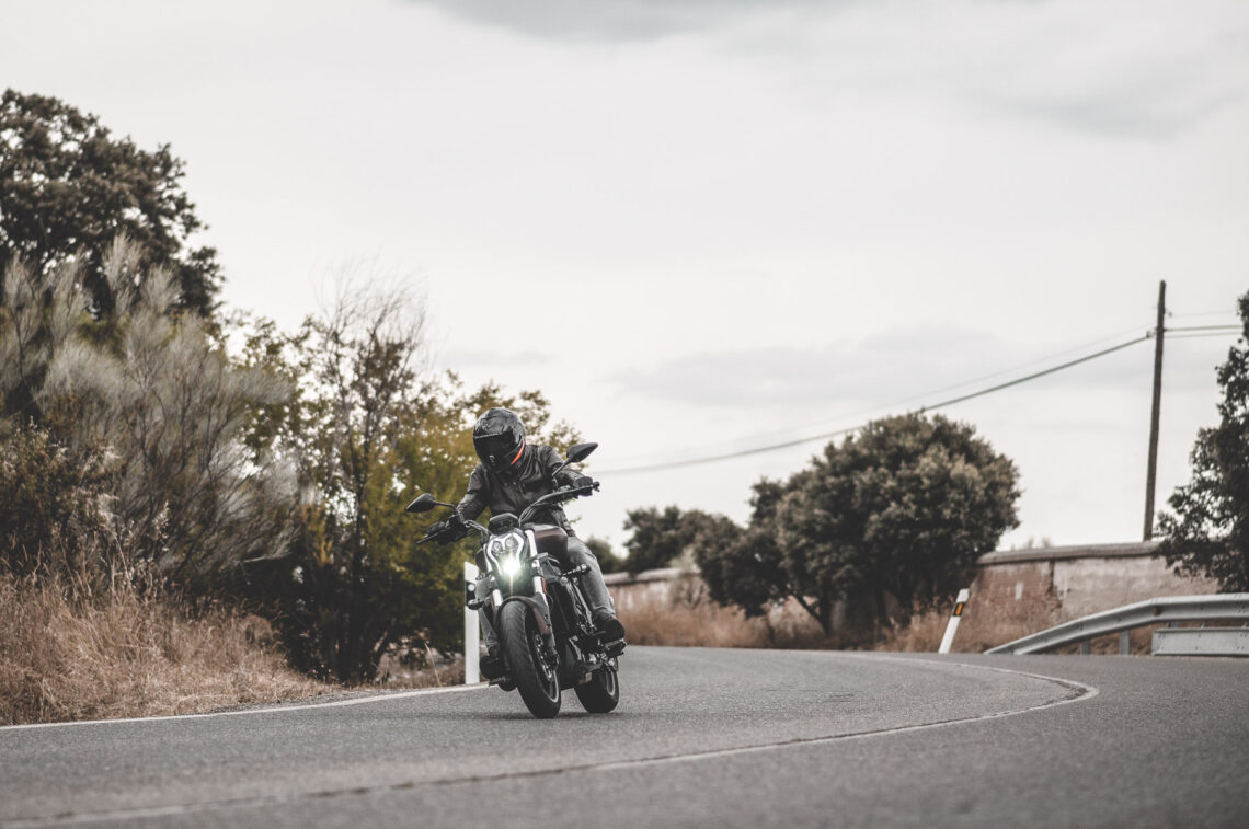 Tiene un paso por curva sobresaliente y puedes hacer cambios de dirección bastante rápidos teniendo en cuenta su porte cruiser. De hecho, a pesar de llevar los estribos bien delante no es fácil tocar con ellos, lo que te permitirá tumbar sin miedo. Para tener una distancia entre ejes de 1600 mm, sorprende muy gratamente. El tren delantero lee fantásticamente bien el asfalto con firmeza pero sin renunciar al confort. El amortiguador trasero es un poco tosco (regulable en precarga) y se siente duro; sobre todo lo notarás si la carretera no tiene un buen firme.