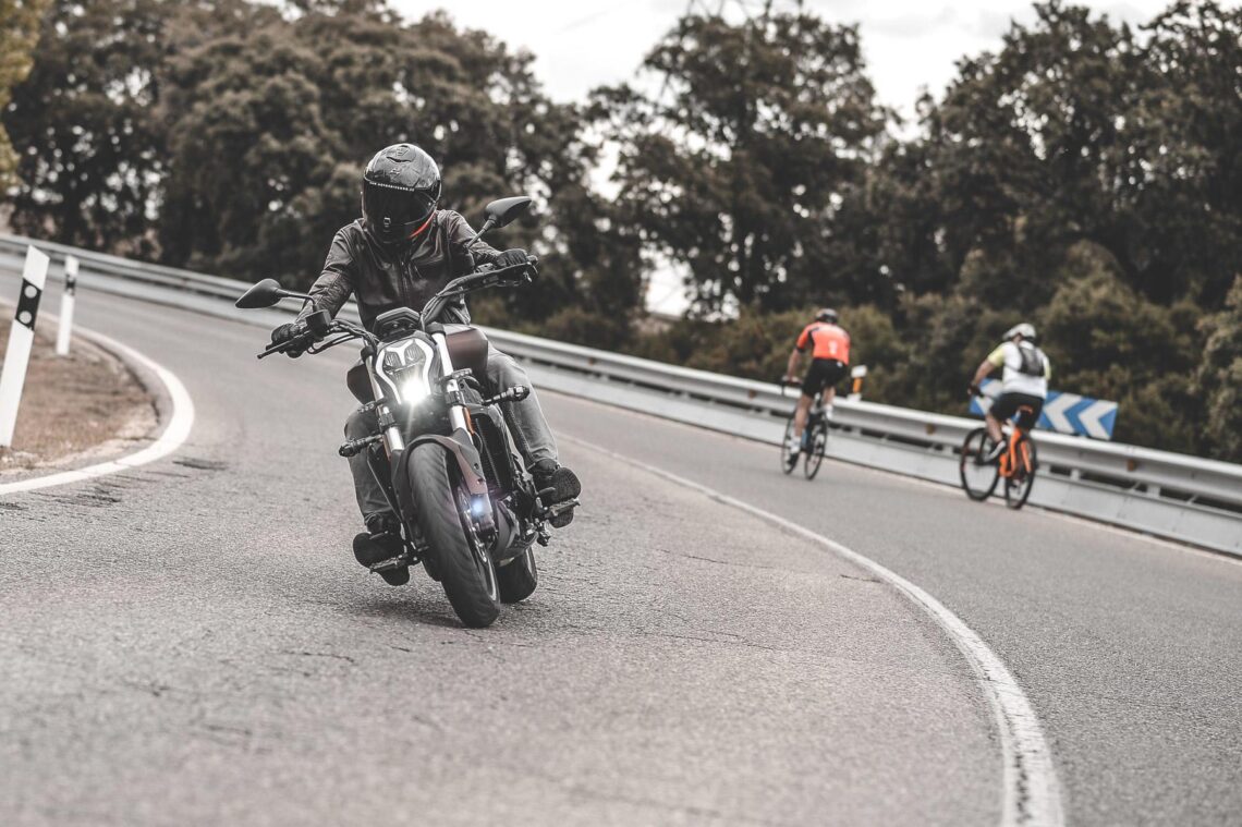 La Benelli 502C es gustosa de conducir gracias a sus buenos bajos. Su bicilíndrico es capaz de mover sus 217 kg con soltura y con mucha suavidad. Es una moto que pide ir baja de vueltas y jugar con su buen par. Ahí es donde se siente cómoda entregando la potencia y también te hace disfrutar de su alegre empuje. Cuando subes de 6.000 rmp es cuando empiezas a notar vibraciones en el manillar y, si bien es cierto que el motor se vuelve un poco más alegre, penaliza en este aspecto.