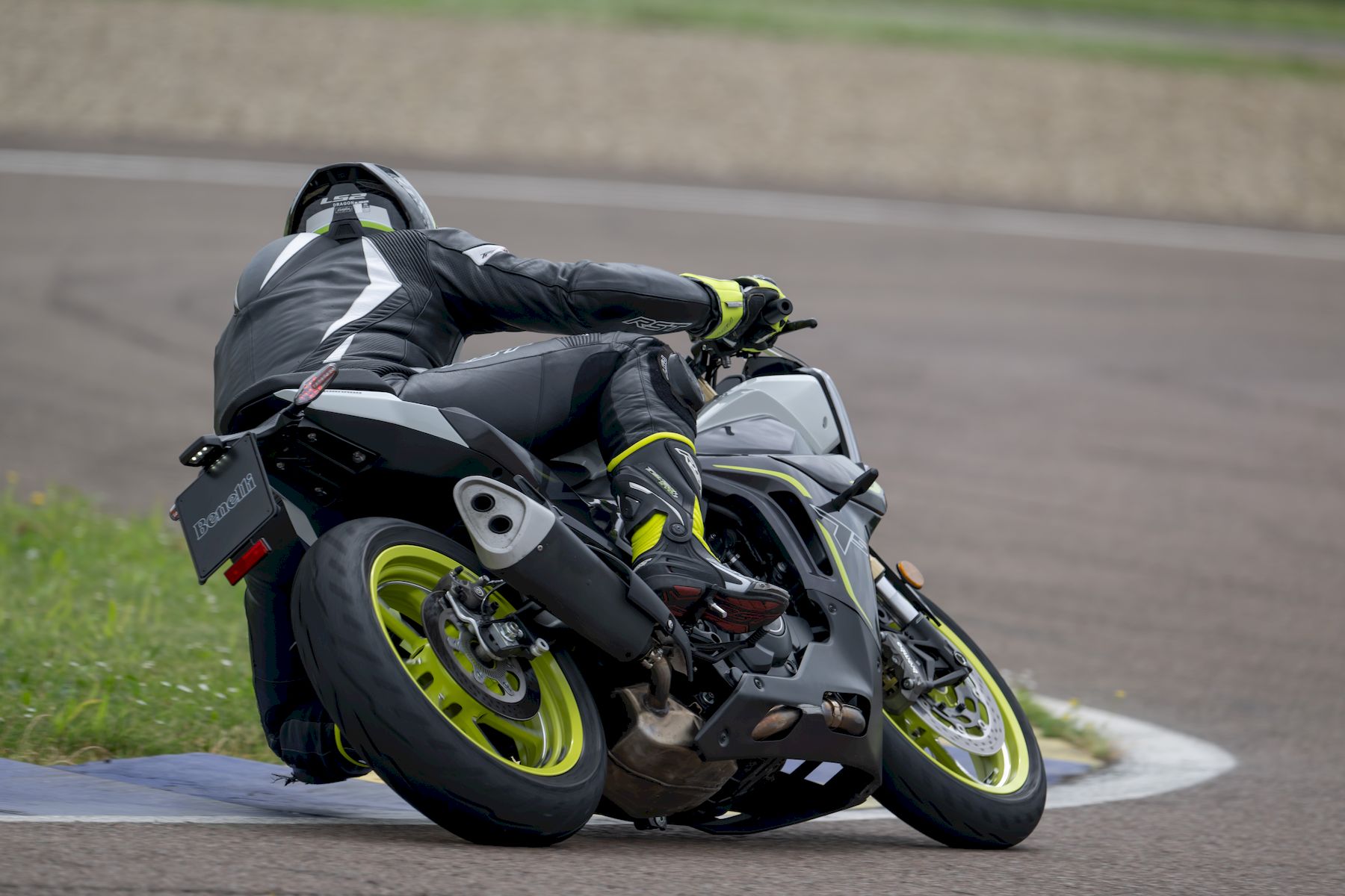 Por otro lado, las geometrías (1.403 mm entre ejes, 23.9º de lanzamiento y 91.1 mm de avance) son muy contenidas y favorecen la "conducción al ataque" (las de la Ducati Panigale V2 S que probamos en febrero, por ejemplo, son más conservadoras). Por último, el trío de pinzas Brembo cumplen de sobra su cometido, con una pareja delantera apoyada en una bomba radial que otorga una seguridad y confianza digna de una superbike.