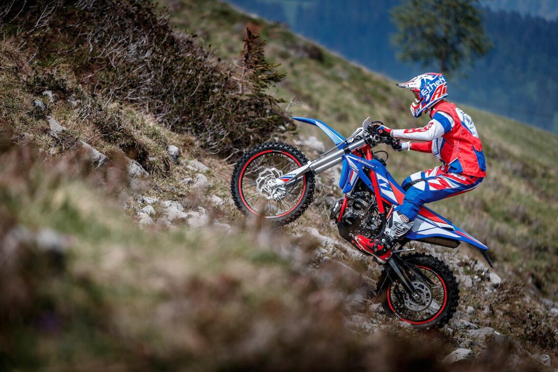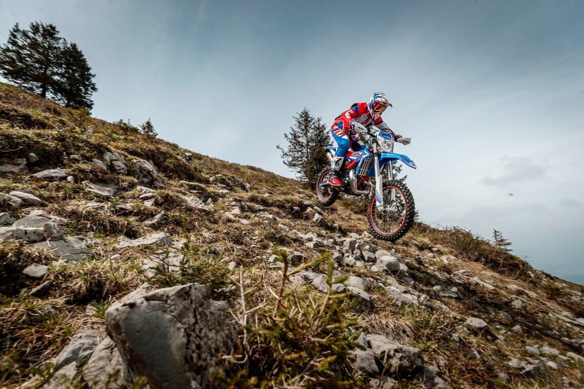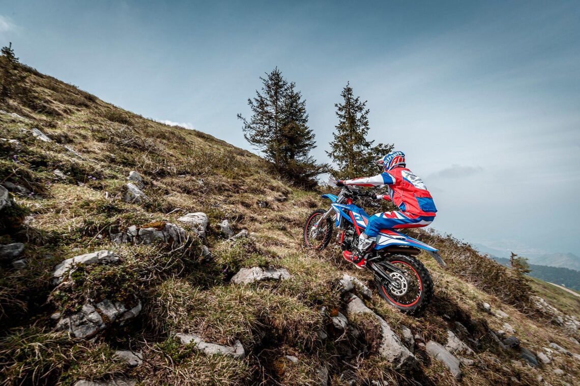 La XTrainer luce una combinación de colores inédita en azul, blanco y rojo, pero sorprende por su excelente comportamiento de motor y por la facilidad en su manejo. Responden a las necesidades de quien necesita una moto con respuesta inmediata y accesible con el primer golpe de gas (recuerda que cuentan con motor 2T). Por eso, se convierten también en dos opciones para iniciarse en el enduro extremo.
