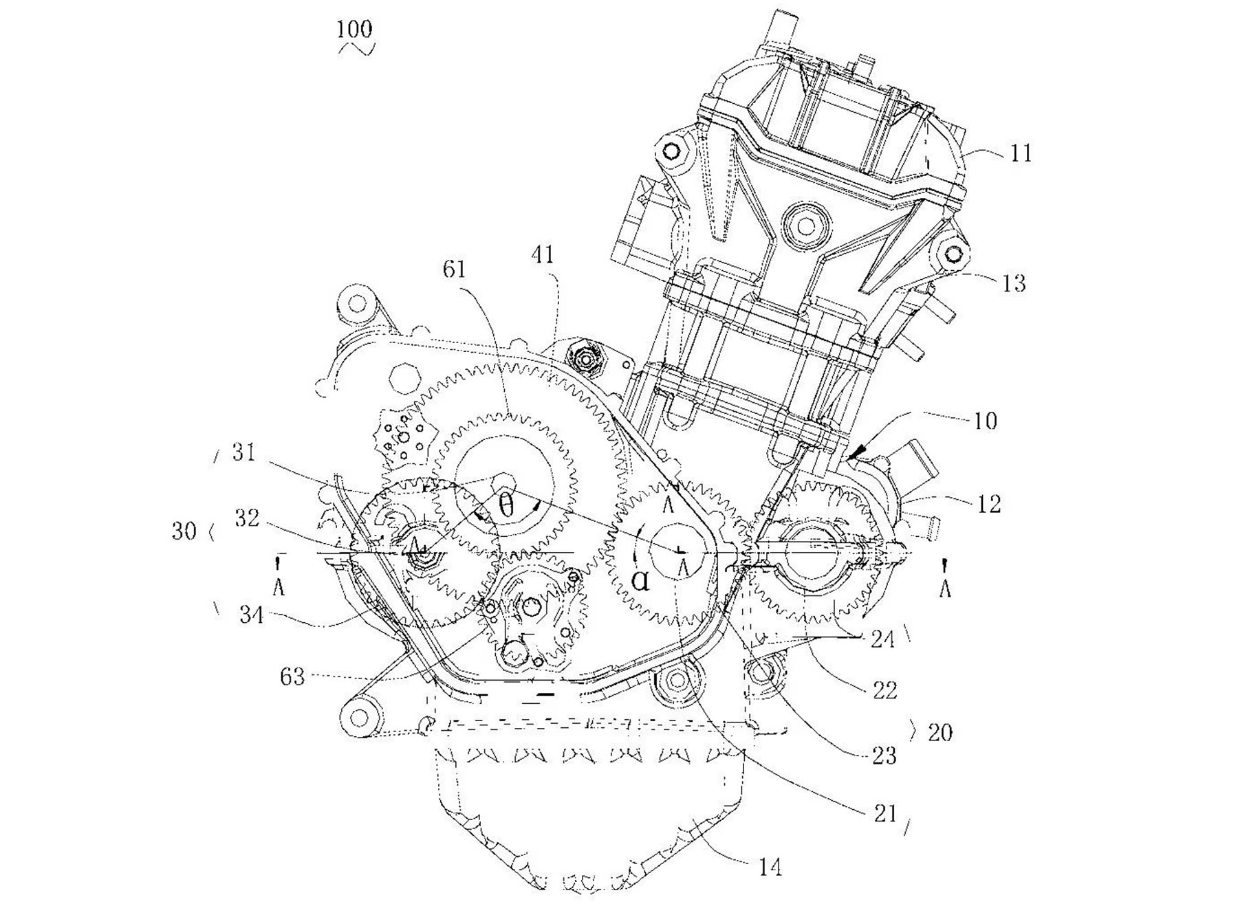 Si vemos las fotos filtradas apreciaremos un eje de equilibrado en la parte delantera, común en los motores de 3 cilindros, y una bomba que parece estar accionada por el mismo eje. Al motor se le acopla una caja de cambios de 6 marchas. Pero si afinamos el análisis veremos que la patente se centra en detalles de poca importancia como el accionamiento de la bomba de aceite, dejando de lado la novedad de un tercer cilindro.