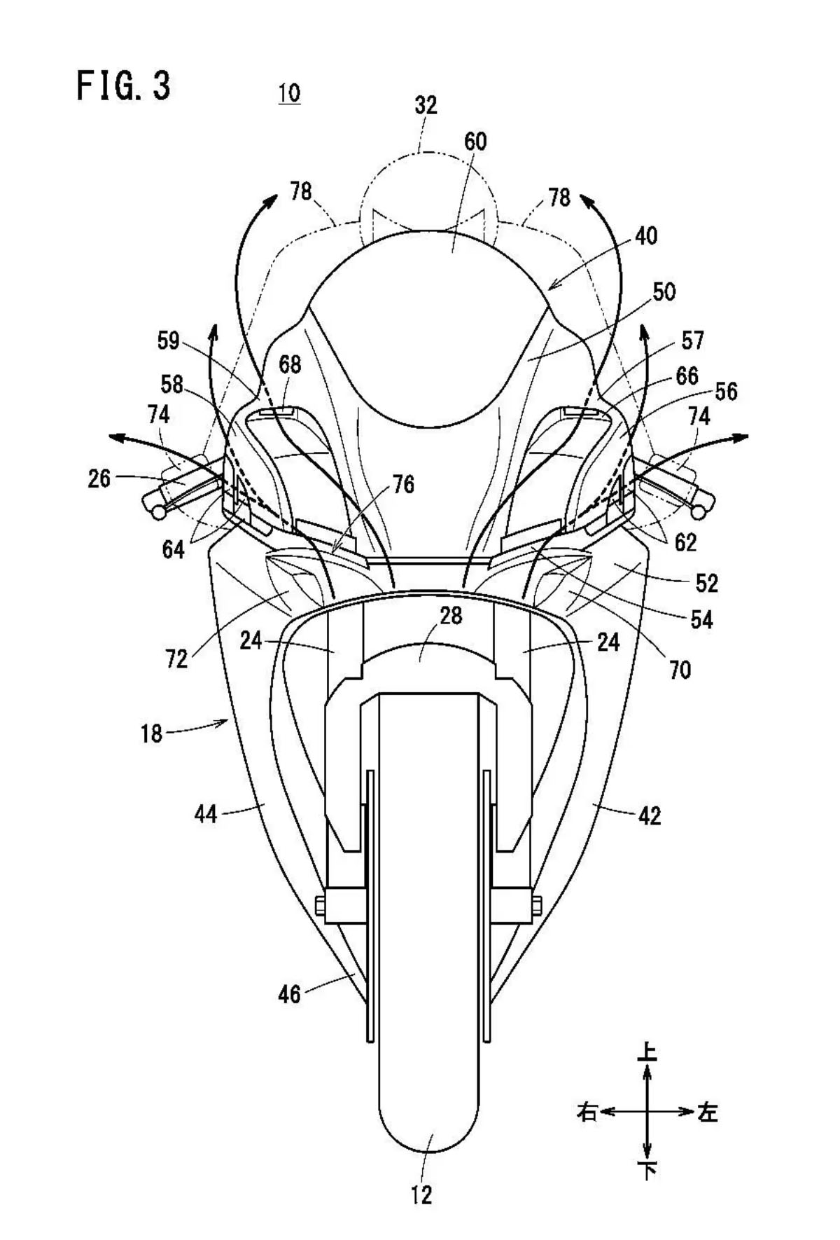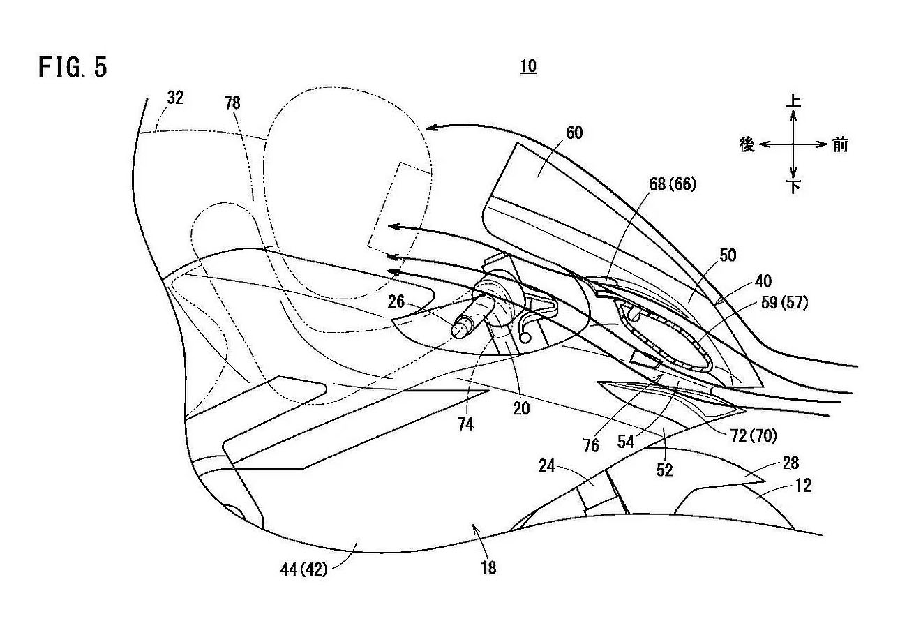 Además de lo mencionado, la solicitud de patente de Honda también cita otros beneficios como la cortina de aire que crea este nuevo diseño de cara al piloto, mejorando su aerodinámica: