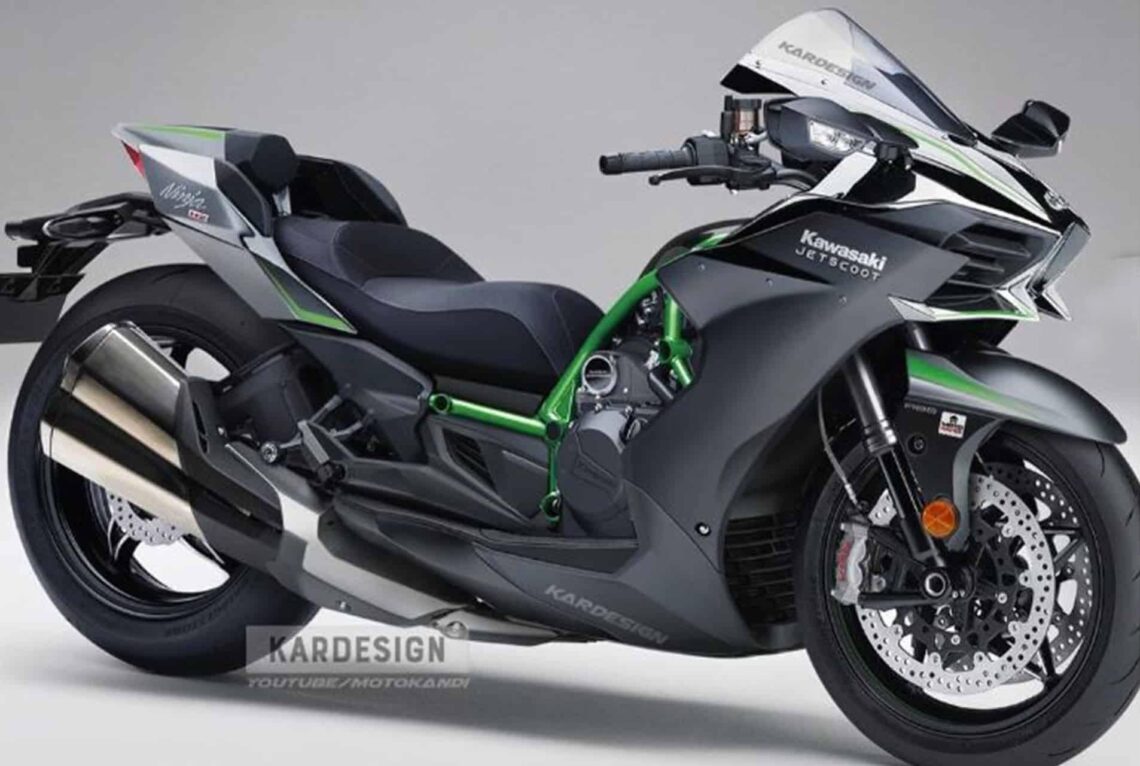 Hoy nos llegan unos bocetos, unos render, unos photoshops si preferís llamarlo así de cómo podría verse un futuro maxiscooter de Kawasaki, bajo un nombre bautizado por la prensa especuladora de Kawasaki J1000 H2, haciendo guiño a ese motor sobrealimentado. Uno de los renders es del famoso Kardesign, que ha juntado ciertas partes de la Kawasaki H2 bajo el diseño de un maxiscooter. Otros bocetos de diferentes medios nos llegan también mostrando la misa idea, como el de Yosep Hendrawan, o el de Mich Superbikes con fuerte inspiración en la Kawasaki Ninja 1000SX.