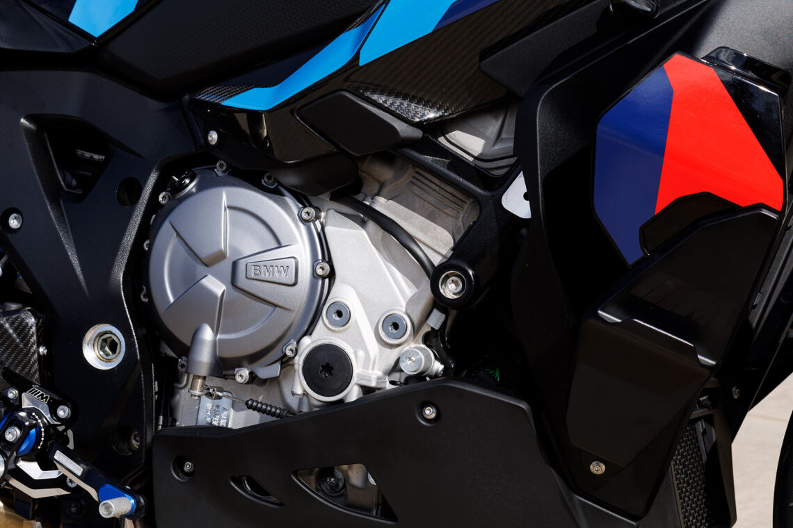 La BMW M 1000 XR está impulsada por un motor tetracilíndrico en línea DOHC de 999 cc con distribución variable, 16 válvulas (titanio) y refrigeración líquida que declara 201 CV a 12.750 rpm y 113 Nm a 11.000 rpm. Dispone de toberas de admisión variable (desde 11.000 rpm), embrague anti-rebote y cambio semiautomáico secuencial, la compresión asciende a 13.3:1, la relación de cambio se ha acortado en 4ª-5ª-6ª y el desarrollo final también (corona de 47 dientes en vez de 45).