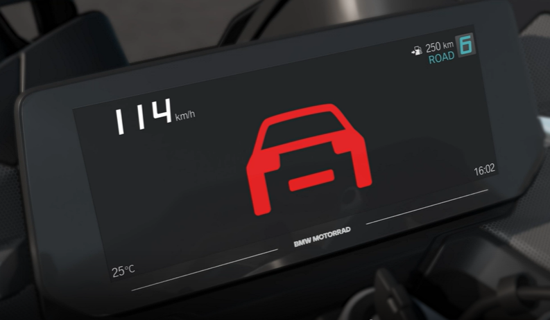 Desde BMW Motorrad recalcan que este sistema no previene las colisiones, sino que solo avisa al piloto para ayudarlo ralentizando la moto lo suficiente como para darte más tiempo de reacción.