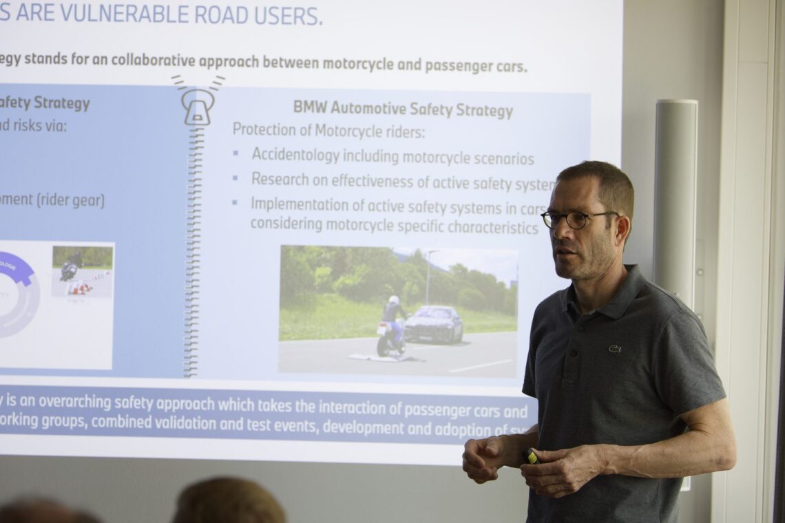 Conseguir nuevas fórmulas para mejorar la seguridad de los pilotos es una de las prioridades en los laboratorios y despachos de BMW. Nos lo dejaron claro durante la visita que realizamos junto a otros medios internacionales a su sede situada en Munich. Unir las fortalezas, similitudes y experiencias entre BMW Motorrad y BMW Automotive para mejorar las tecnologías de seguridad de ambos campos es uno de los proyectos en los que están inmersos los alemanes.