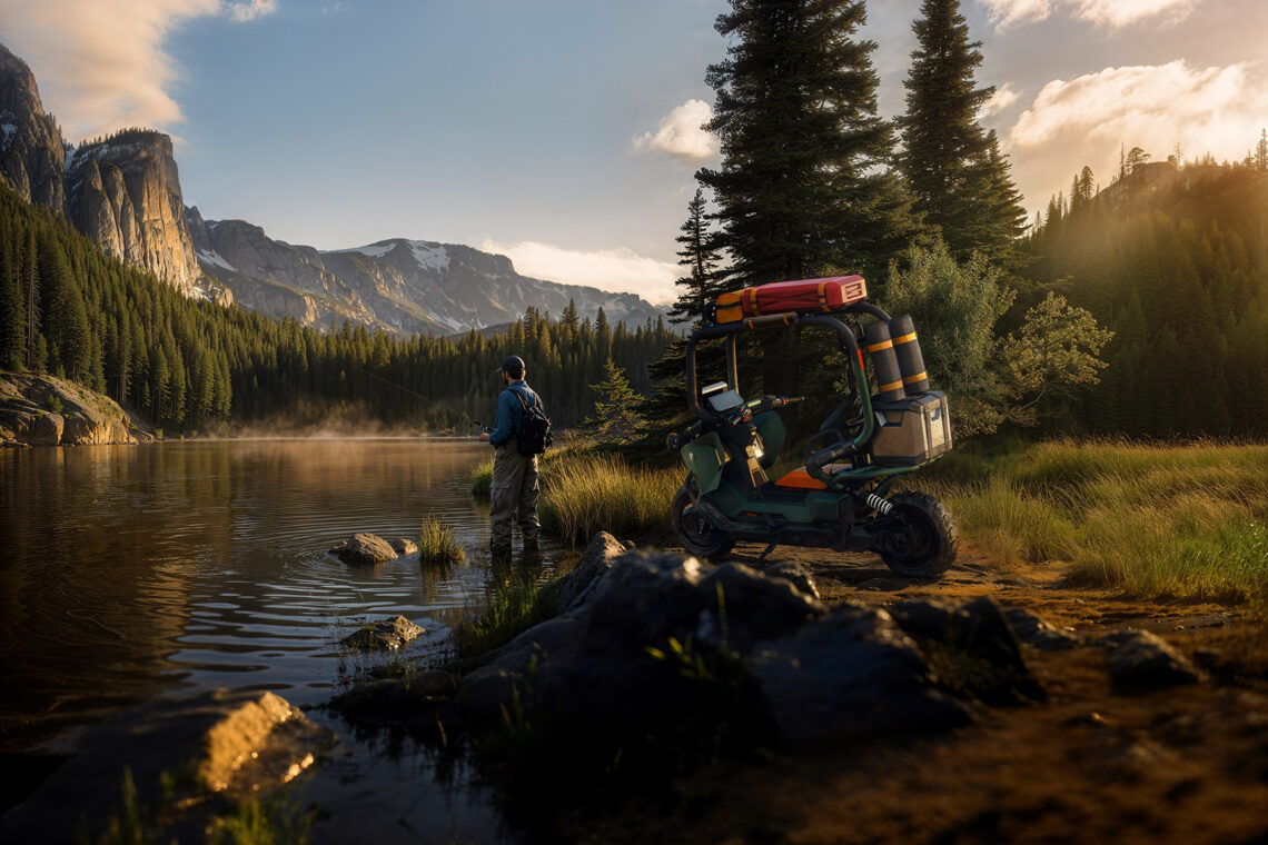 En cuanto a su estética, vemos un diseño robusto y con actitud agresiva e incluso campera. No en vano, las imágenes nos lo muestran circulando por el desierto (sí, la IA también hace milagros...). Por lo demás, vemos aluminio al desnudo y la utilización de colores básicos como el blanco mate y negro con algunos detalles en rojo neon.
