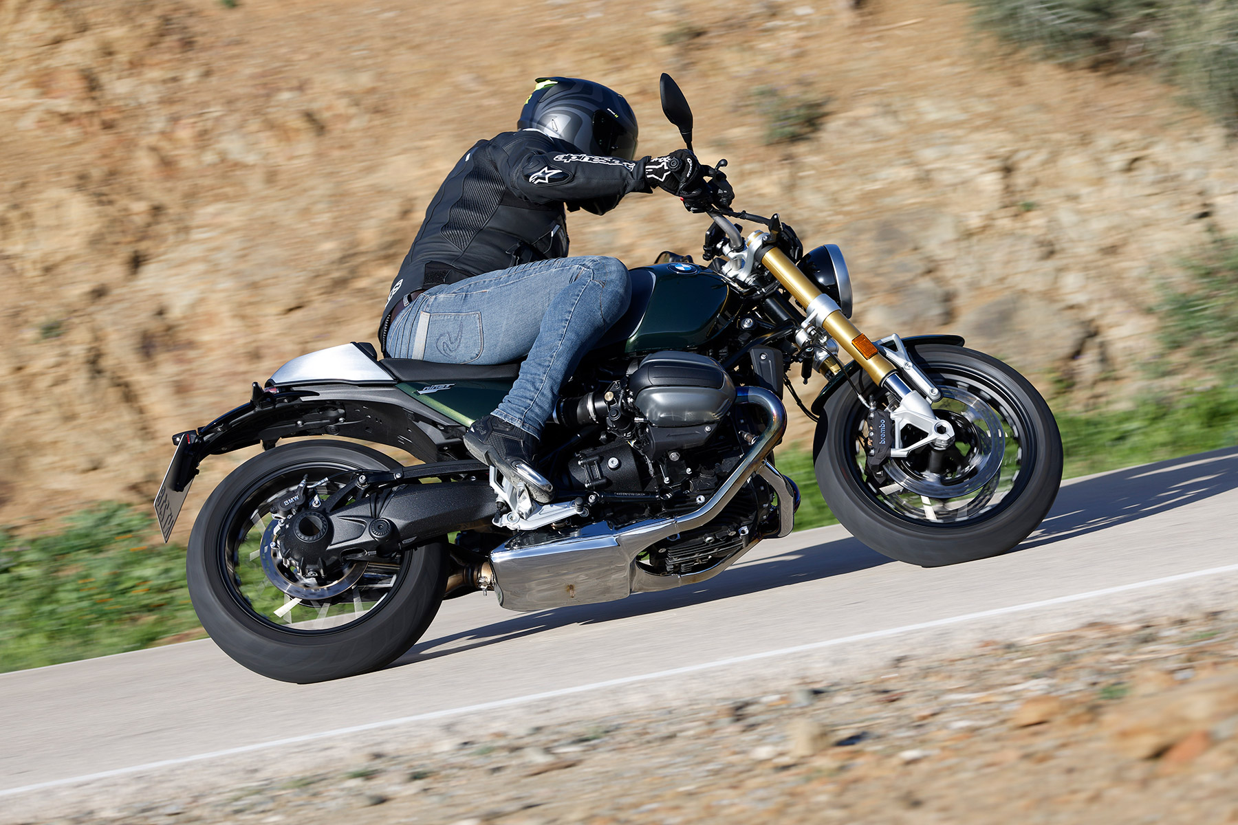El motor es más dulce, lineal y refinado, una delicia para tratarse de un aire-aceite "de toda la vida". Cada modo de conducción (seleccionas desde el botón MODE de la piña derecha) tiene una entrega de potencia más/menos directa a las insinuaciones del gas, además de una intervención más/menos intrusiva del ABS y del control de tracción. Con todo controlado, sólo deberás acostumbrarte al tacto de los neumáticos Continental, demasiado conservadores en frío para una moto con tanto par. Y es que la R 12 nineT engaña, pues bajo ese disfraz de moto clásica te encuentras una auténtica 'deboracurvas'.