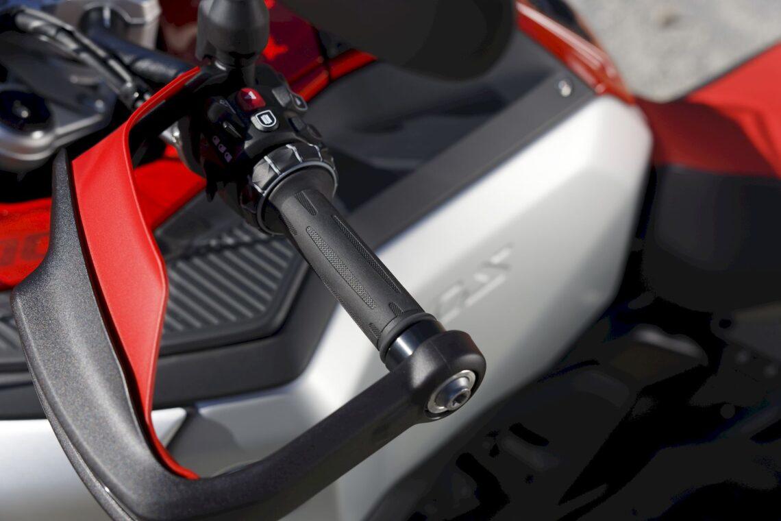 Si hablamos de ayudas electrónicas a la conducción, de serie cabe mencionar sus cuatro modos de conducción (Eco, Rain, Road y Enduro), módulo IMU, control de tracción (DTC), Integral ABS Pro, control del par de arrastre del motor (MSR), asistente dinámico de frenada (DBC), asistente de arranque en pendiente (HSC), control de presión de los neumáticos (RDC) y control de crucero dinámico (DDC) con función de freno. Suspensión electrónica semiactiva DSA, llave de proximidad, iluminación full-LED, puños calefactables, toma de carga USB, sistema de llamada de emergencia e-Call e instrumentación TFT con conectividad completan el conjunto.