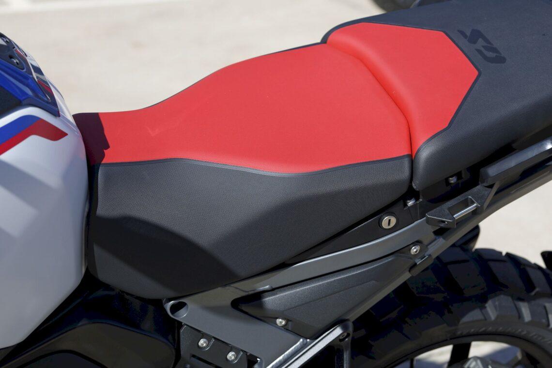 Arrancamos la primera jornada de prueba con una BMW R 1300 GSA estándar 'Rojo Racing' que añadía los 3 packs de equipamiento disponible para ella: Innovación (1.505 €, destaca por el radar y la iluminación adaptativa), Dinámico (925 €, modos de conducción Pro y pinzas Brembo sport) y Touring (808 €, soporte de maletas, preinstalación de navegador, parabrisas eléctrico, colector cromado). Por si esto fuera poco, también incluía neumáticos de tacos Metzeler Karoo 4 (56 €, en lugar de los Metzeler Tourance Next 2/Michelin Anakee Adventure de serie), cambio ASA (863 €, sustituye al quickshifter) y control adaptativo de altura (581 €). Otra opción casi obligatoria son las maletas laterales de aluminio (36,5 l + 37 l. / 1.404-1.471 € según acabado) y baúl trasero (37 l. / 718-748 €) con toma de corriente USB-C incluida, aunque no las llevábamos montadas.