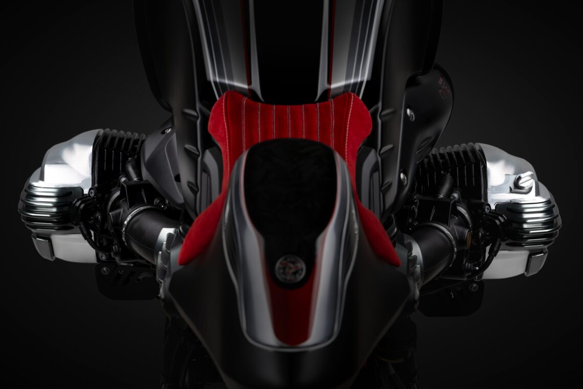 Más de 10 kg de aluminio procesadas durante decenas de horas para dar con un producto final que pesa sólo 1,1 kg. Conserva la icónica forma de gota de agua del motor de las R a la vez que mejora la estética y resalta su lado más artesanal.