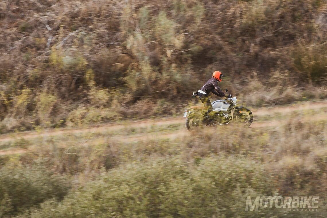 La BMW R nineT Scrambler no es una moto preparada para el off-road. A pesar de su estética, con algún guiño a las motos camperas de los 70, hay que descartar el hacer con ella poco más de una pista sencilla. La postura de pie no es natural, el manillar cae muy bajo y las estriberas están altas. Las suspensiones enseguida hacen tope y los neumáticos no dan confianza. Pilotar es complicado, aunque se agradece la desconexión del ABS y TC para hacer alguna floritura. En este aspecto sus rivales directas son más dotadas.