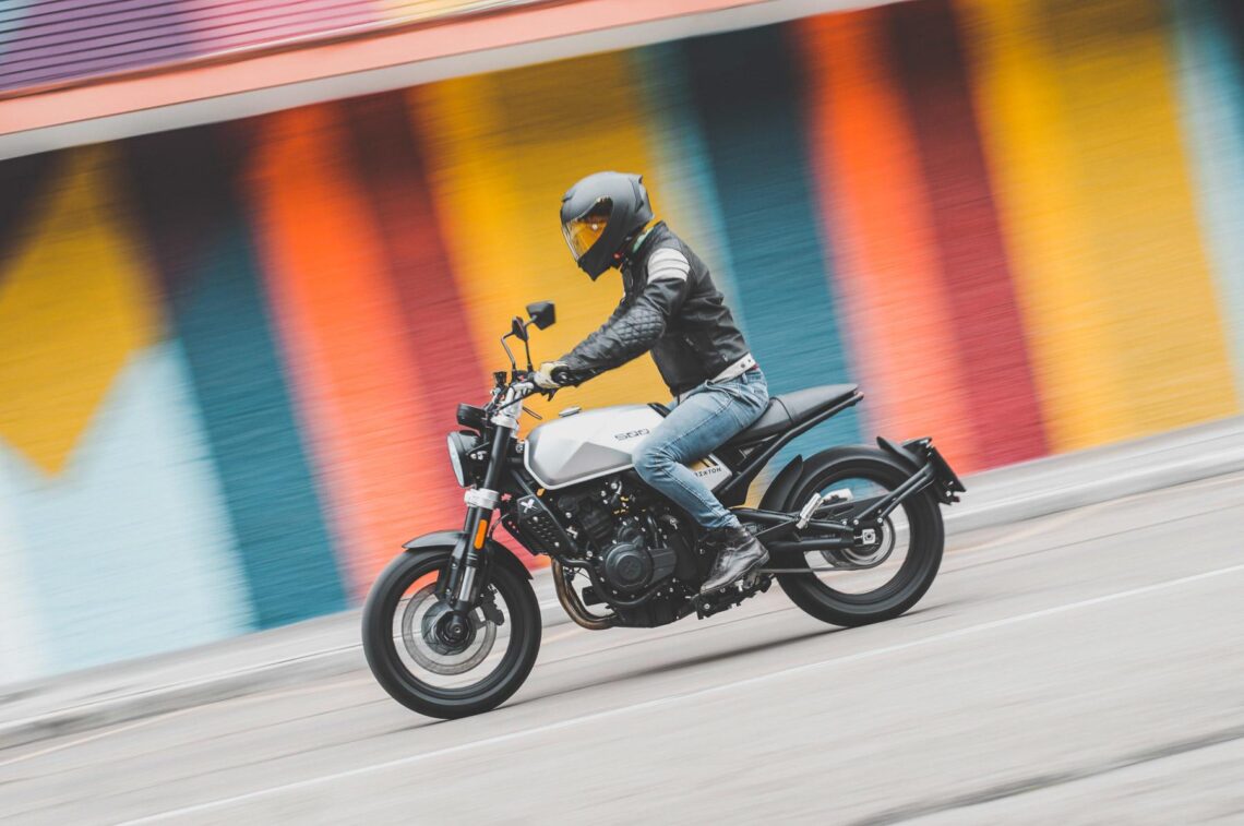 Primero en comodidad. Es una moto muy confortable y cuya postura no fatiga nada. Siendo rival de la Husqvarna Vitpilen 401 podemos afirmar que es bastante más cómoda. Es una 500 de dimensiones considerables y vas muy amplio sobre ella, no así el pasajero que padecerá las consecuencias del diseño de su corto asiento. Pero lo bueno de las motos pensadas para el carnet A2 es que todo en ellas está concebido para sacar el máximo rendimiento a sus componentes y no es una moto grande capada. Están diseñadas para un motor de 47 caballos y todo va en consonancia. Eso es positivo.