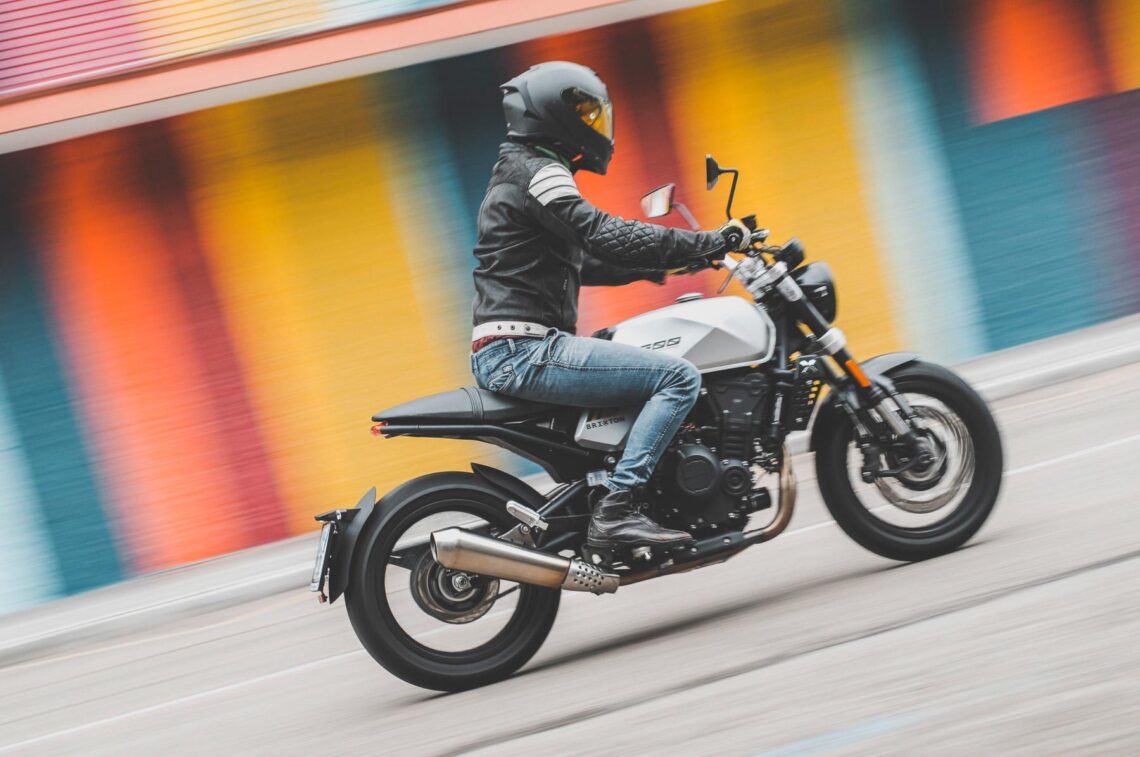 Pero de nada serviría si luego la moto no está a la altura a nivel dinámico. Para ello han contado con buenos materiales como horquilla invertida Kayaba ajustable, ABS Bosch, frenos JJuan con pinzas radiales, manetas regulables y neumáticos Pirelli Angel ST y un chasis de diamante propio. Componentes que sacan pecho a la hora de darle gas a su motor de casi 48 CV. Un propulsor bicilíndrico en paralelo desarrollado por Brixton y fabricado en Asia, que también sorprende por su suavidad y prestaciones. Además, es compatible con el carnet A2.