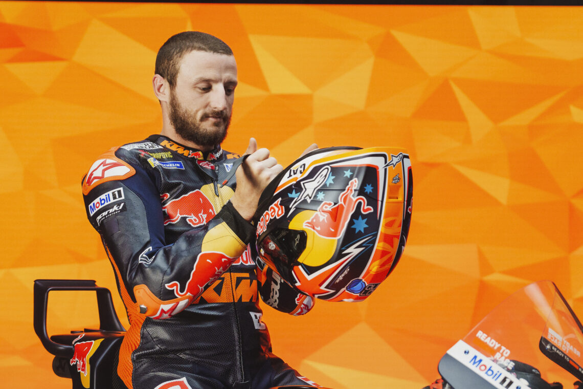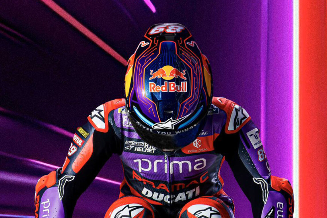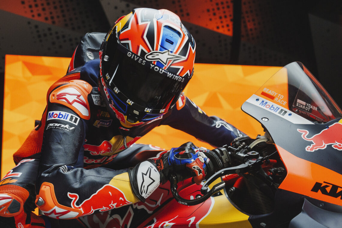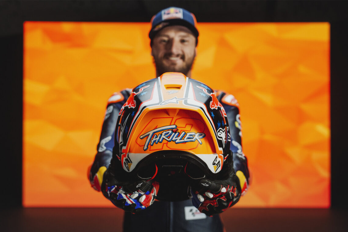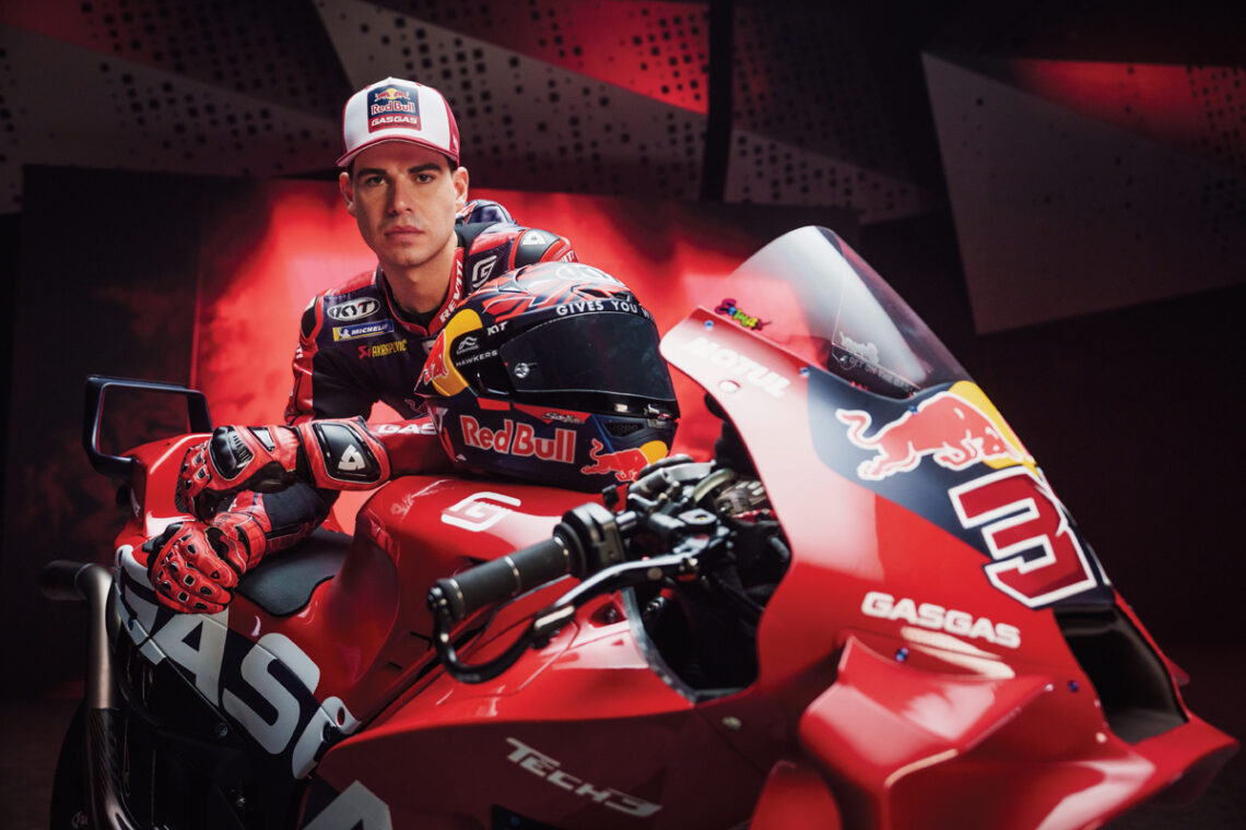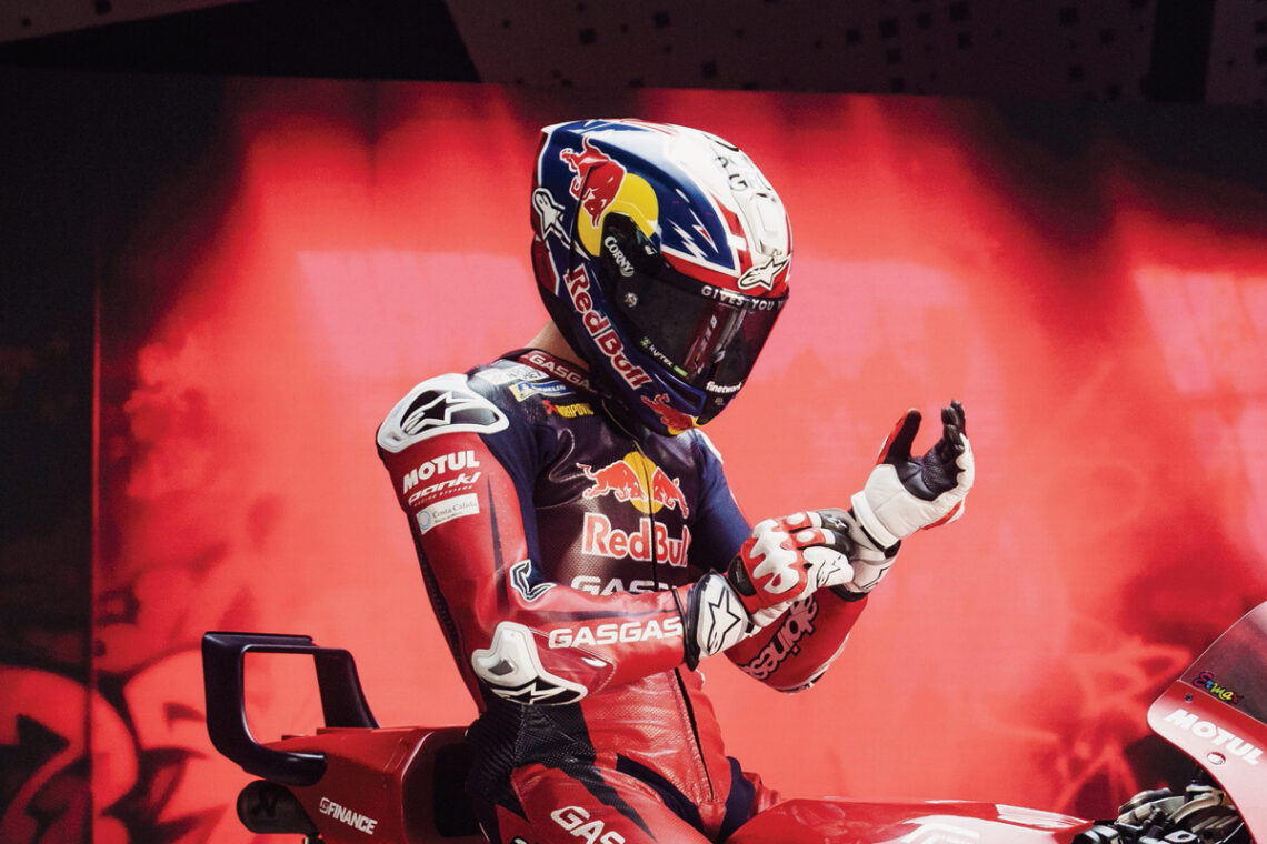La gran novedad con este casco es Pedro Acosta. El murciano se protegía hasta entonces con MT Helmets, pero en su llegada a la categoría reina ha optado por equiparse con uno de los mejores cascos del mundo. Y lo hace con su inseparable patrocinador Red Bull, que también luce en su nueva GASGAS del equipo Tech3.