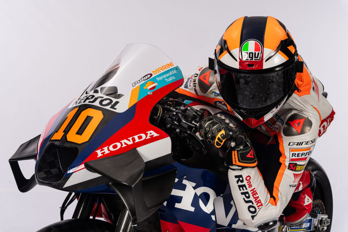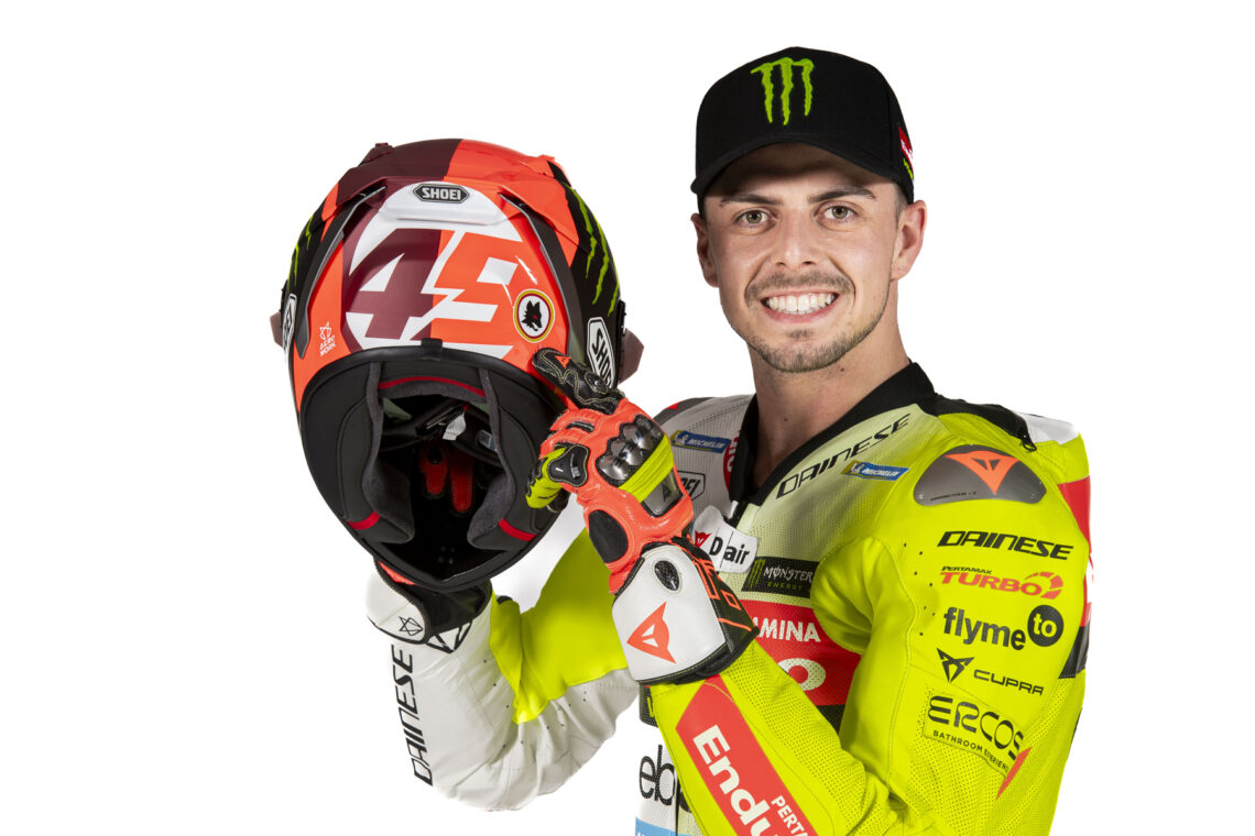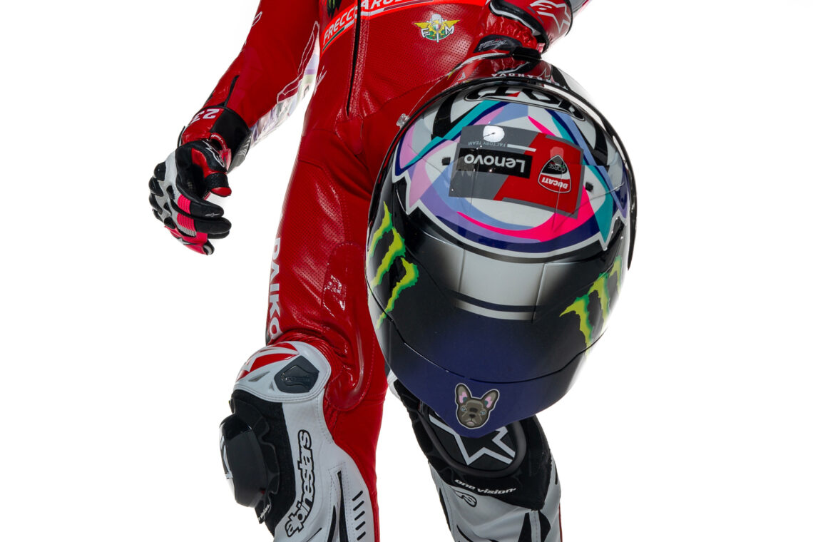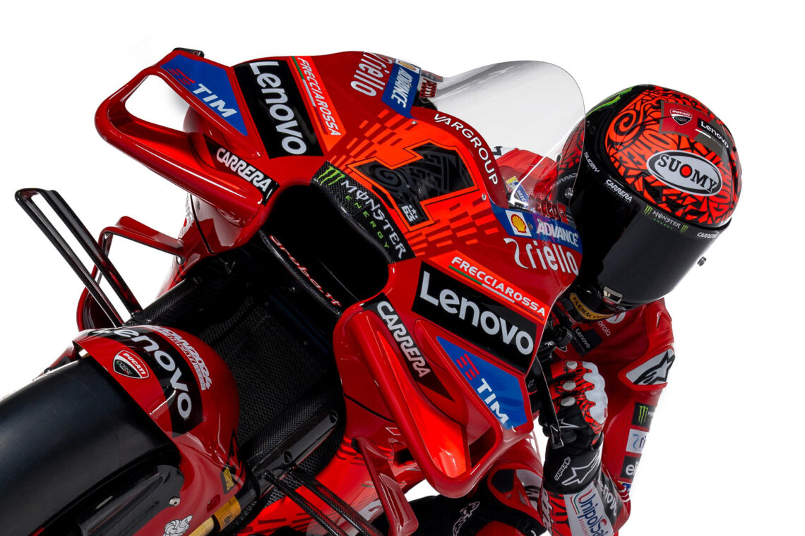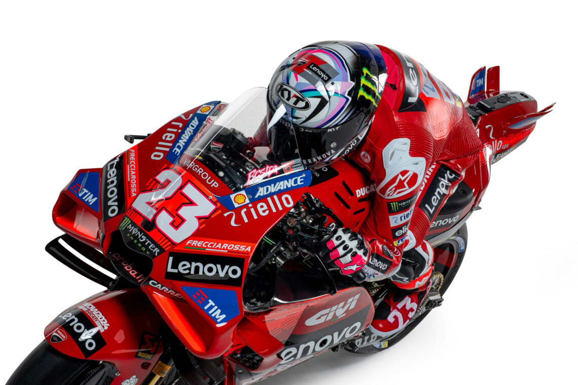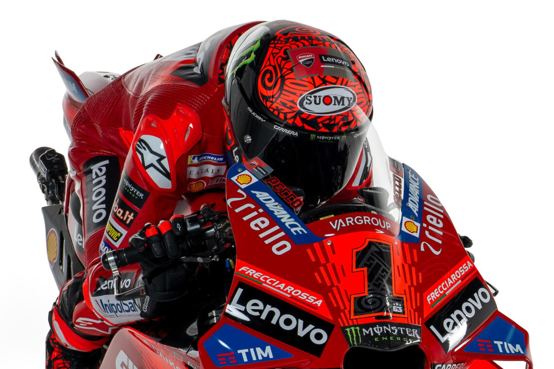 También se equipa con el SHOEI X-SPR Pro su hermano Álex Márquez, que a diferencia del #93 opta por colores azules que son muy similares a los de 2023. Por último, el italiano Fabio Di Giannantonio cambia de equipo y también de diseño, escogiendo para 2024 colores rojos y blancos para su Desmosedici GP 23.
