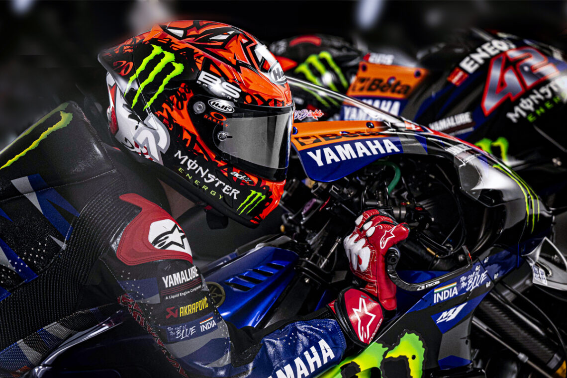 La mítica marca japonesa tiene dos pilotos en la categoría reina. Maverick Viñales se lleva protegiendo con el RX-7V EVO desde su título de Moto3 en 2013. Su diseño no cambia demasiado respecto a la temporada pasada y sigue destacando por su 'M' frontal junto a líneas rojas que combinan con la Aprilia del equipo oficial.