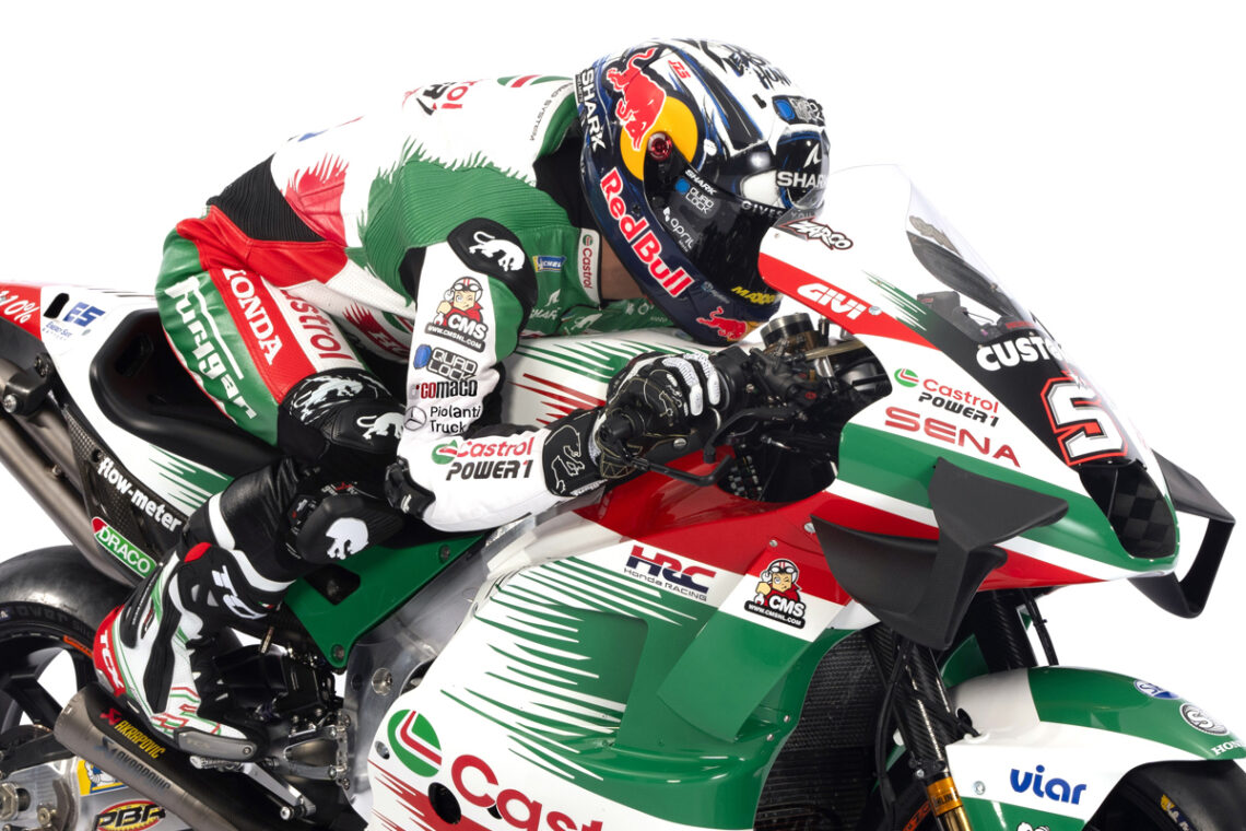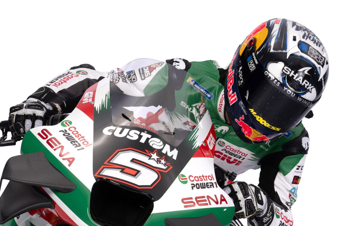 Tres pilotos de MotoGP llevan el nuevo SHARK Aeron GP. El más veterano de todos, Johann Zarco. El francés, ganador del último Gran Premio de Australia, también cambia de aires este año junto a un diseño retro en el LCR Team, aunque su casco apenas se actualiza para esta temporada.