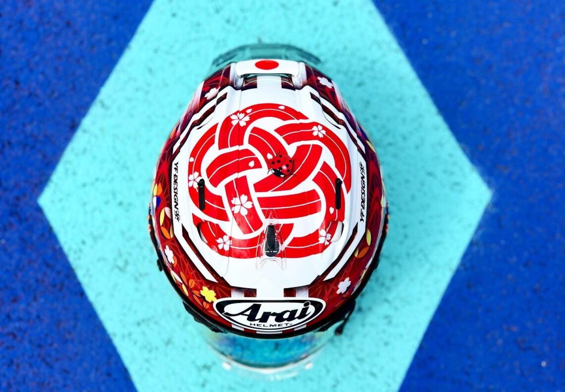 Y también lo hace otro fiel piloto: Takaaki Nakagami. El japonés lleva protegiendo su cabeza con la marca de su casa desde sus inicios, y siempre destaca por su llamativo estilo oriental. En 2024, el piloto del LCR Honda lucirá las llamativas flores de su país.