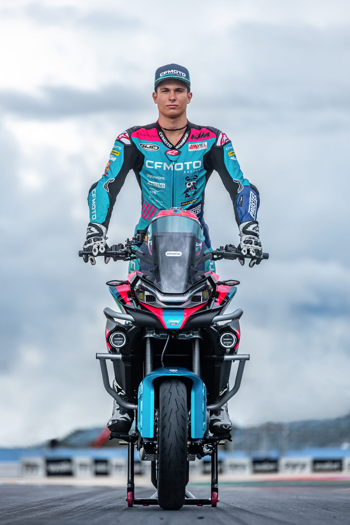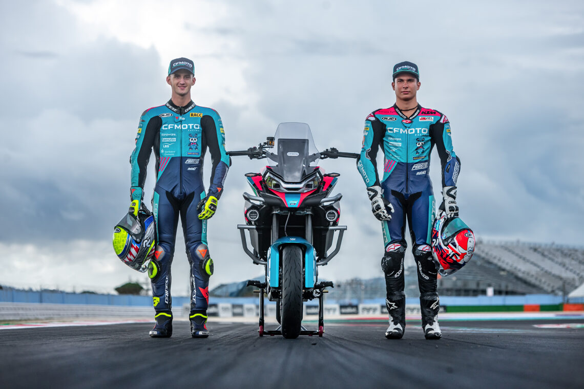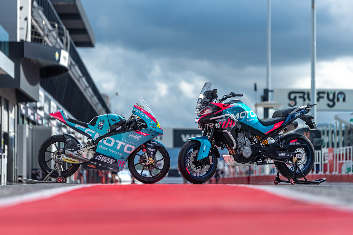 Después de un año de colaboración entre CFMoto y el equipo PrüstelGP en el Mundial de Moto3, los pilotos Xavier Artigas (#43) y Joel Kelso (#66) han dado a conocer una edición especial denominada CFMoto 800MT Sport R que se ha desvelado durante el EICMA de Milán.