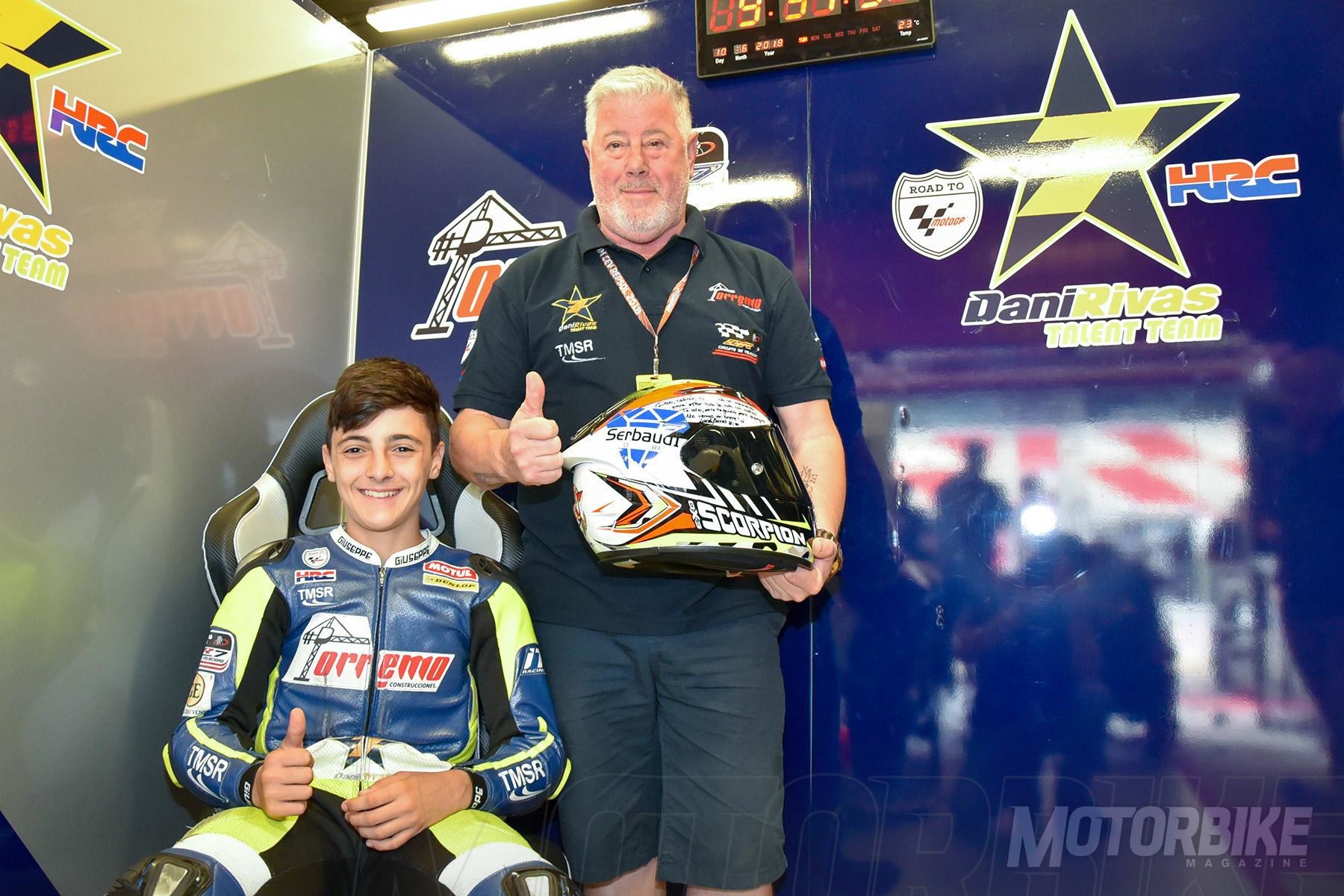 Además, el proyecto ha escalado un peldaño más en 2018, puesto que cuentan con una estructura dentro del FIM CEV en la categoría de la European Talent Cup. Han debutado este año junto a Luis Miguel Verdugo y al italiano Salvatore Ragusa formando el Dani Rivas Talent Team, otro paso más en la pirámide que se dibujó cuando nació el proyecto y cuya cúspide para el futuro está en llegar al Mundial de Moto3. Willy Rivas nos lo explica: «En la pirámide que hicimos estamos ya en el tercer peldaño. El cuarto sería llegar al Mundial Júnior de Moto3 en el FIM CEV, y el siguiente alcanzar el Mundial de Moto3. Suena muy bonito, pero es complicado. Tenemos que estar con los pies en el suelo, pero lo cierto es que los pasos que hemos dado en esta tercera temporada son brutales. Que estemos ya con dos pilotos compitiendo con equipos mundialistas en la European Talent Cup es motivo de orgullo y de una gran satisfacción».