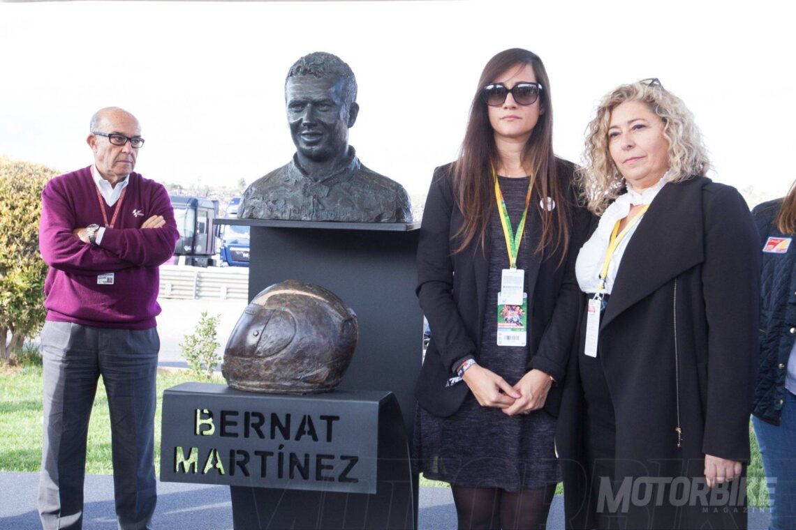 Hace varios meses se hizo oficial que una curva del trazado valenciano, la número 8, recibiría su nombre después de un proceso de votación en el que la afición eligió el viraje que homenajearía a Bernat. En el acto, el presidente de la Generalitat -Ximo Puig- ha destapado junto a Álex Martínez -hermano de Bernat- el busto en su honor, que próximamente se unirá a los que presiden el circuito de Cheste junto a la estatua de Ricardo Tormo.
