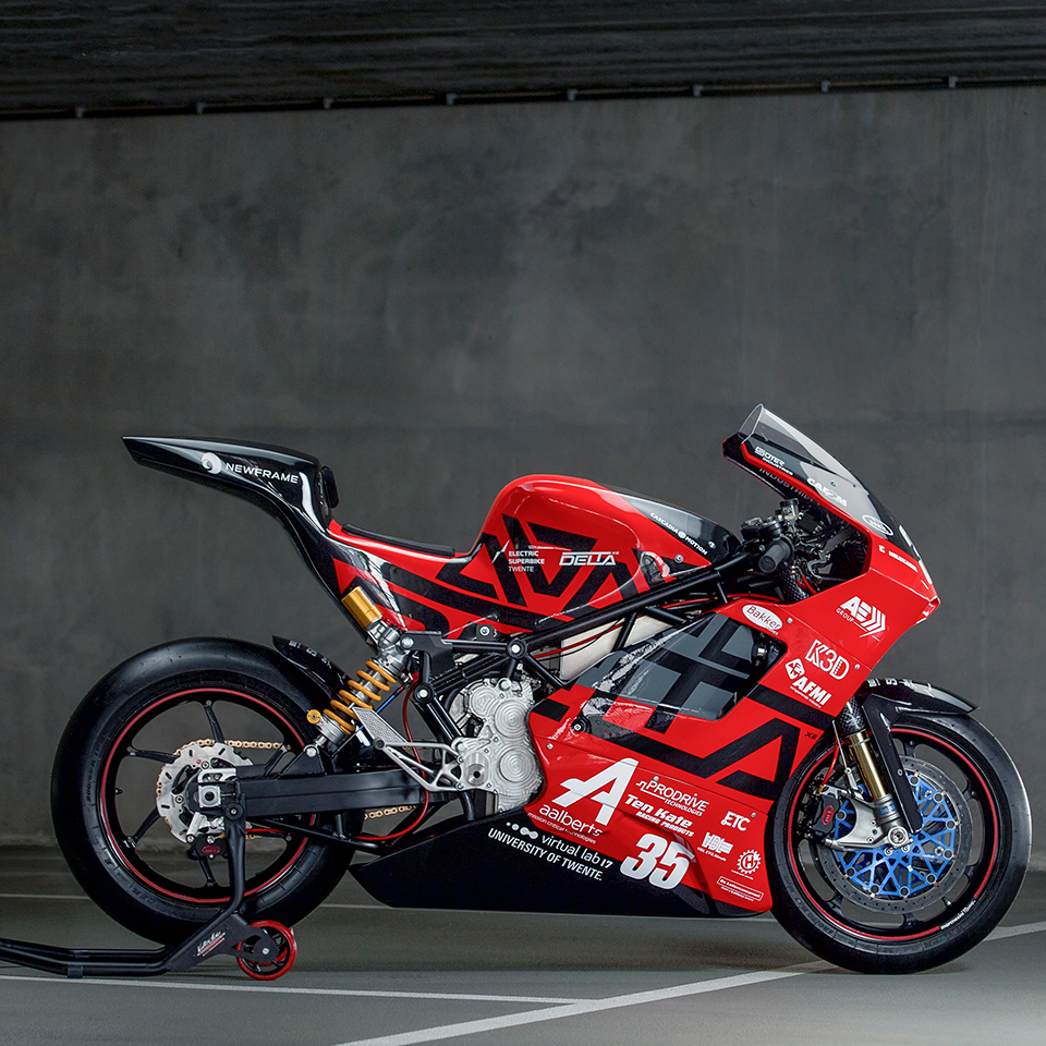 La Delta-XE llega a las noticias como una de las motos eléctricas más potentes que existen, pero lo mejor de todo es que lo hace como trabajo de un grupo de estudiantes holandeses de la Universidad de Twente y la Universidad de Ciencias Aplicadas de Sajonia para competir en el Electric Road Racing Association. Sus cifras lo dicen todo, 200 cv y 170 nm. Quizá la cifra de potencia no nos sorprenda a estas alturas, con superbikes de combustión interna con esa o más potencia, pero para tratarse de una moto eléctrica, es algo más que admirable. Prueba de ello es el exageradísimo par motor que logra, muy superior al de motos sobre alimentadas como la Kawasaki H2 o motos de alta cilindrada y motores de mucho par como la KTM 1290 Super Duke R o la Suzuki GSX-R1300 Hayabusa.