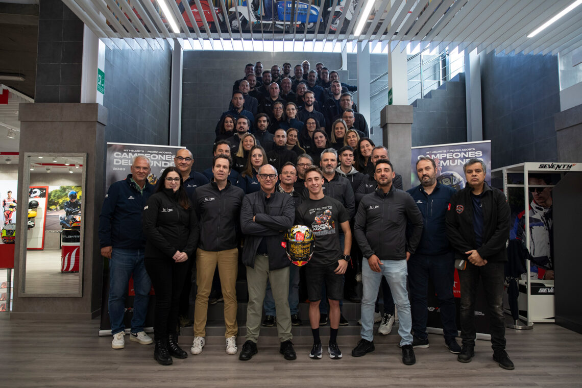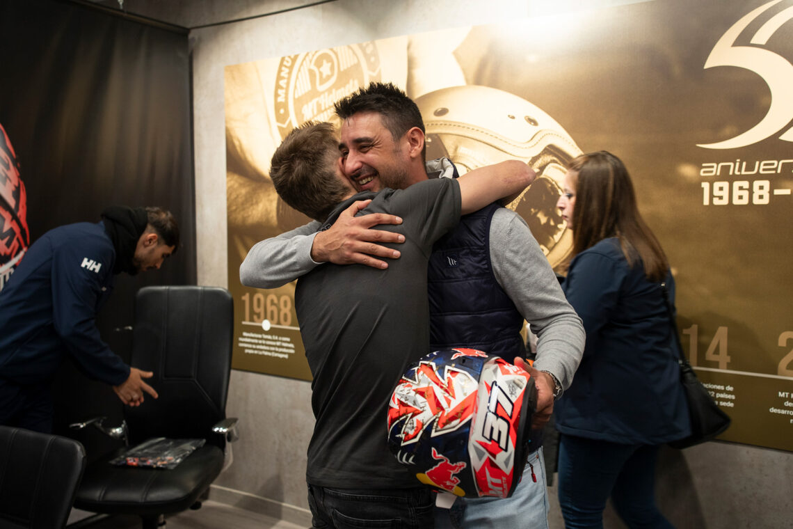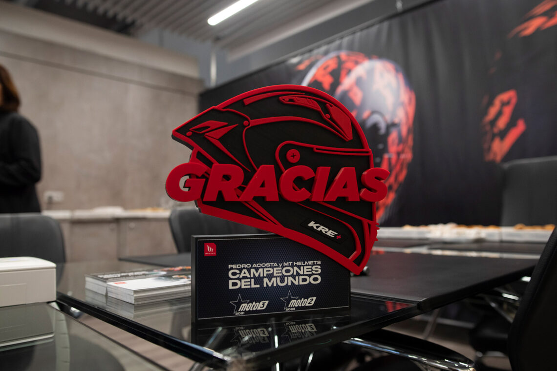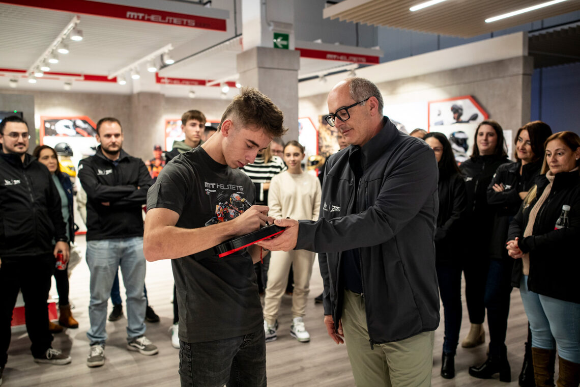 Pedro Acosta: «Es un orgullo haber estado estos cinco años en MT Helmets. Me duele irme justo en el salto a MotoGP pero de verdad pienso que estos dos caminos se van a volver a juntar y que algún día volveré a casa. Sólo es cuestión de tiempo. Tengo que decir que MT salvó mi carrera deportiva, algo que poca gente sabe, pues estando en el CEV ellos apostaron por mí y se hicieron cargo de todo lo necesario sin poner ninguna pega. Ha sido muy bonito poder despedirme de todos en Cartagena».