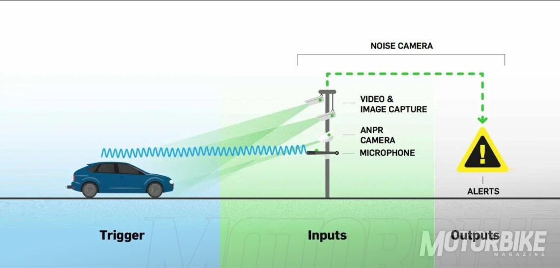 Estas cámaras de tráfico sensibles al ruido funcionan mediante varias cámaras de imagen y cuatro micrófonos para medir el nivel de decibelios cada décima de segundo. De este modo se puede determinar la ubicación del infractor de ruido, gracias a la estela acústica que registran las cuatro cámaras. Este sistema ha sido diseñado y creado por la empresa Bruitparif, y se pondría en funcionamiento con las cámaras CCTV de la policía para así poder emitir las sanciones automáticamente. De este modo se podrá sancionar al infractor de manera más precisa y cuantificada, evitando la libre interpretación del policía cuando realiza un control.