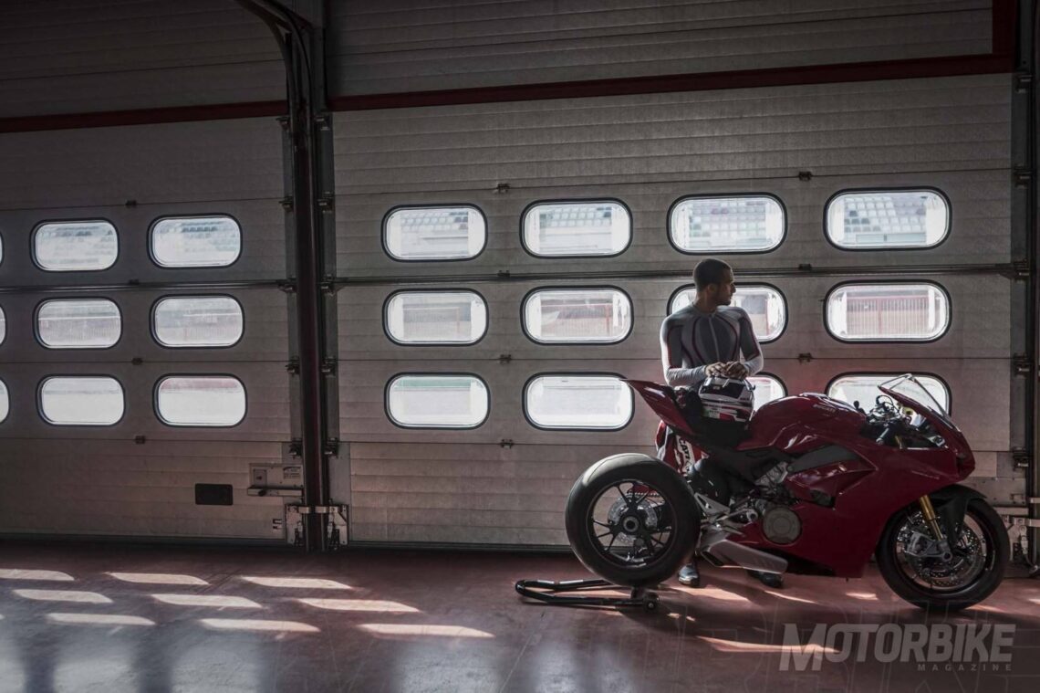 Casey Stoner está hablando sobre su trabajo en el desarrollo de esta moto que, según Claudio Domenicali, es la primera moto de calle que cuenta con misma tecnología que se utiliza en las motos de MotoGP.