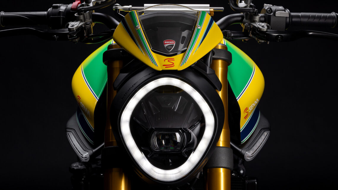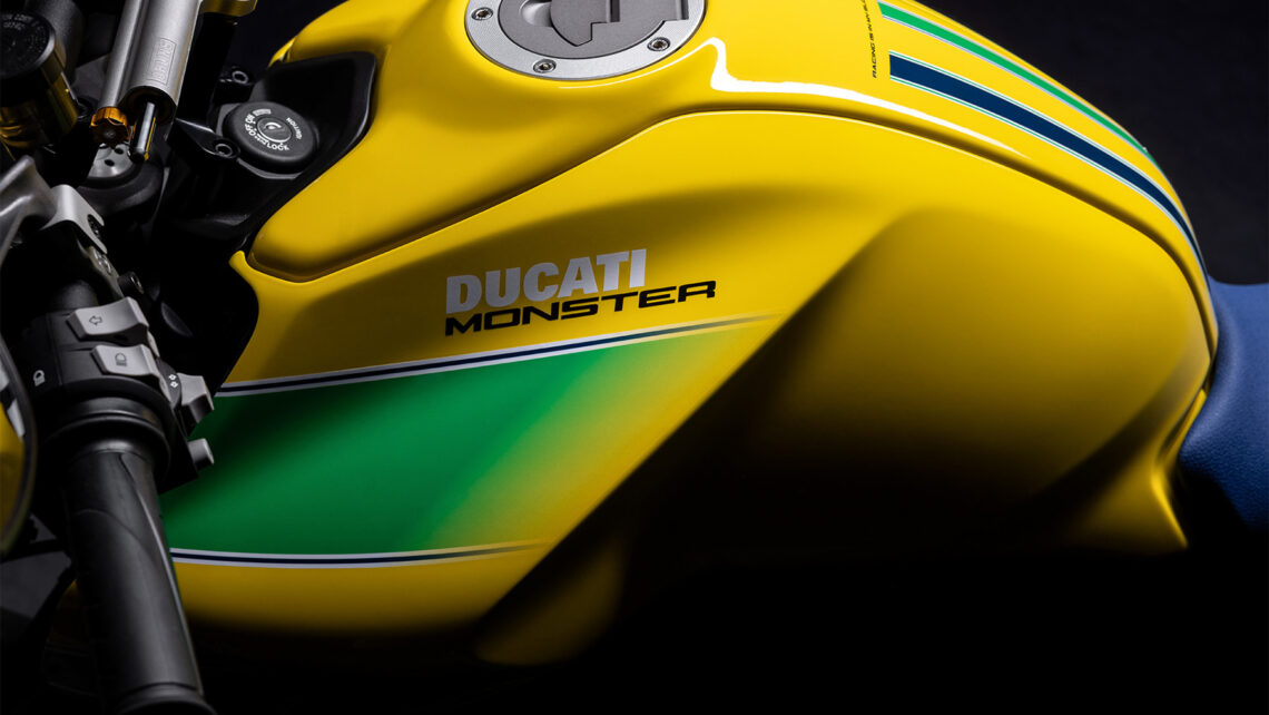 Esta edición tan especial se desliga de la decoración Senna tradicional y hace un homenaje a la librea de su casco, basado en los colores de su país, Brasil. La Ducati Monster Senna captura toda la magia que continua inspirando a los seguidores de "Magic" Senna.
