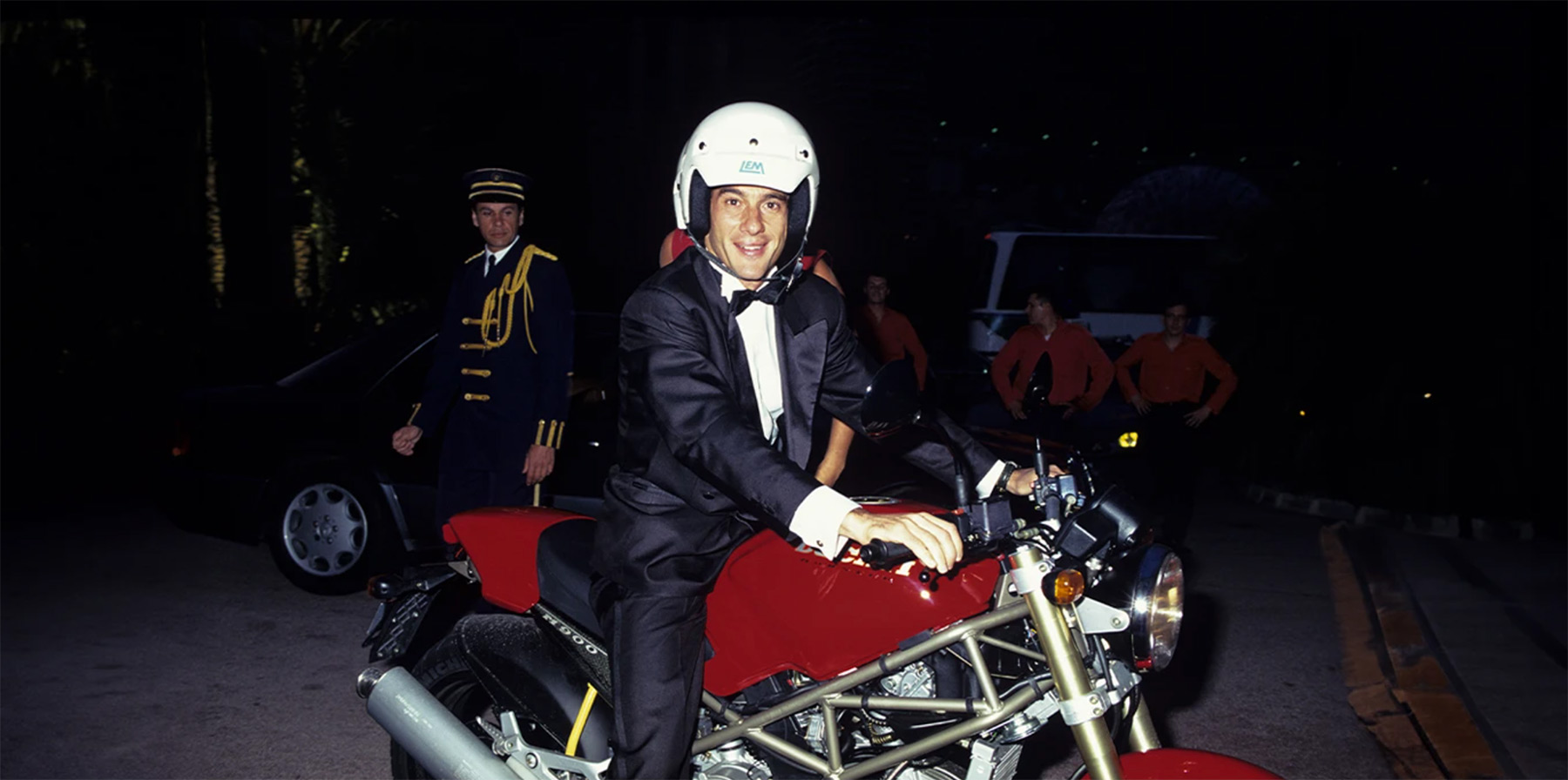 La historia del legendario piloto de Fórmula 1, Ayrton Senna, y la marca de Borgo Panigale, Ducati, comenzó en los años 90 de la mano de Claudio Castiglioni, entonces presidente de Ducati. A este le gustaba asistir con frecuencia a los Grandes Premios de Fórmula 1, donde conoció al piloto brasileño Ayrton Senna, quién dominaba las carreras con su talento y carisma. Tras conocerse, Claudio Castiglioni y Ayrton Senna entablaron amistad, lo que conllevó al piloto brasileño a desarrollar pasión por la marca de Borgo Panigale.