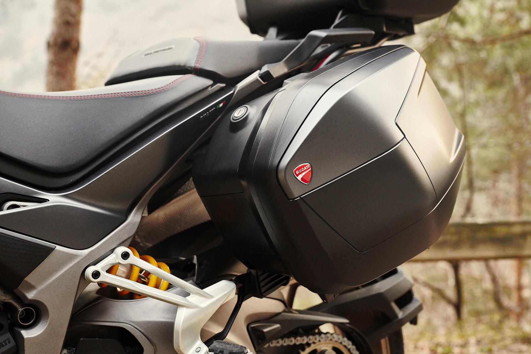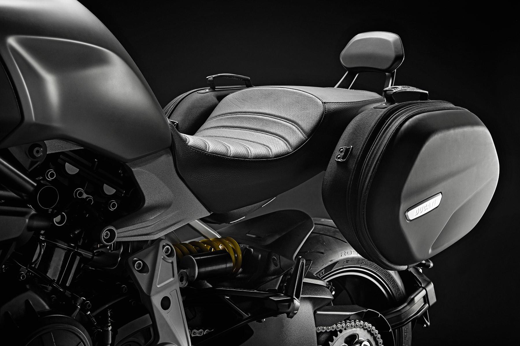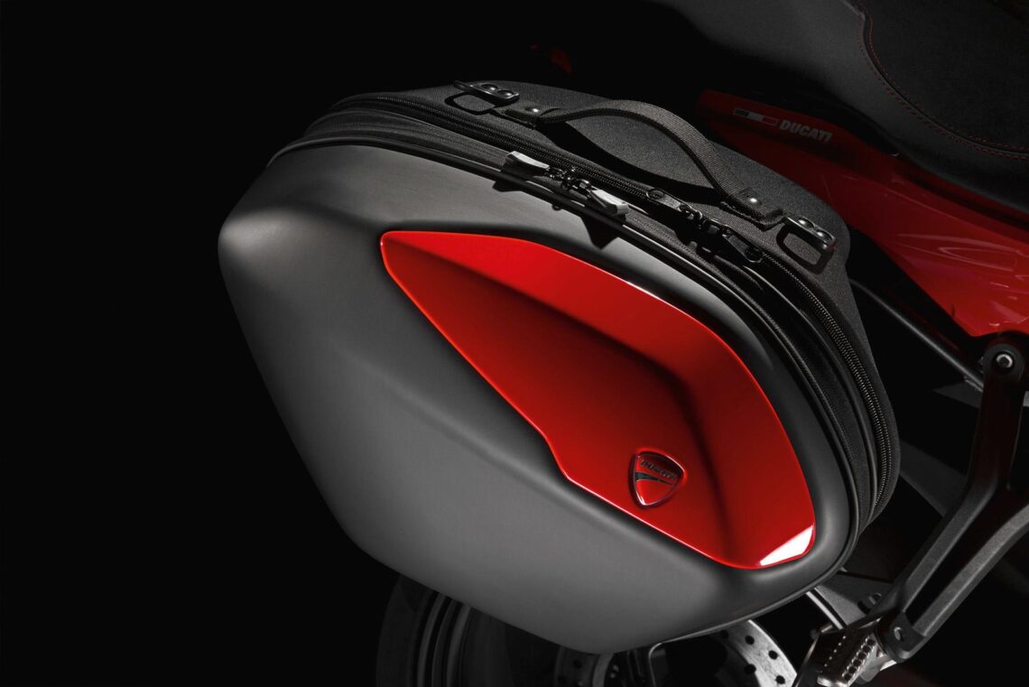 La gama de accesorios Ducati Performance incluyen maletas, asientos o respaldos, entre otros, instalables en las gamas Multistrada, Monster, Diavel y Supersport para mejorar las capacidades de viaje de estas motos.